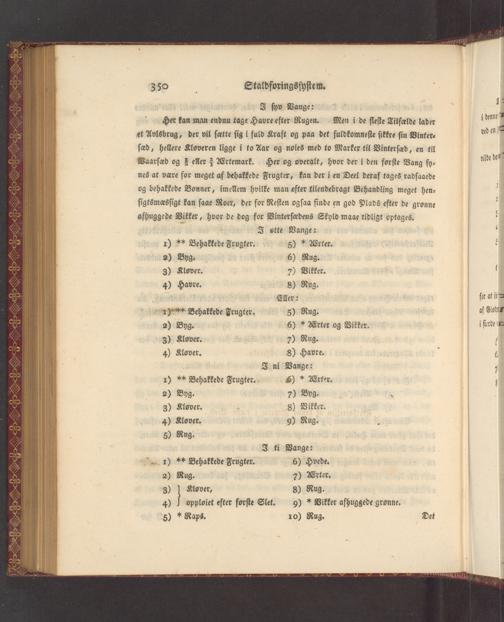 Her kan man endnu tage Havre efter Rugen. Men i de fleſte Tilfalde lader et Avlsbrug, der vil ſatte ſig i fuld Kraft og paa det fuldkomneſte ſikkre ſin Vinter⸗ ſœd, hellere Kloveren ligge i to Aar og noies med to Marker til Vinterſad, en til Waarſad og 2 eller 3 Ertemark. Her og overalt, hvor der i den forſte Vang ſy⸗ nes at vœre for meget af behakkede Frugter, kan der i en Deel deraf tages radſaaede og behakkede Bonner, imellem hvilke man efter tilendebragt Behandling meget hen⸗ ſigtsmasſigt kan ſaae Roer, der for Reſten ogſaa finde en god Plads efter de gronne afhuggede Vikker, hvor de dog for Vinterſœdens Skyld maae tidligt optages.
