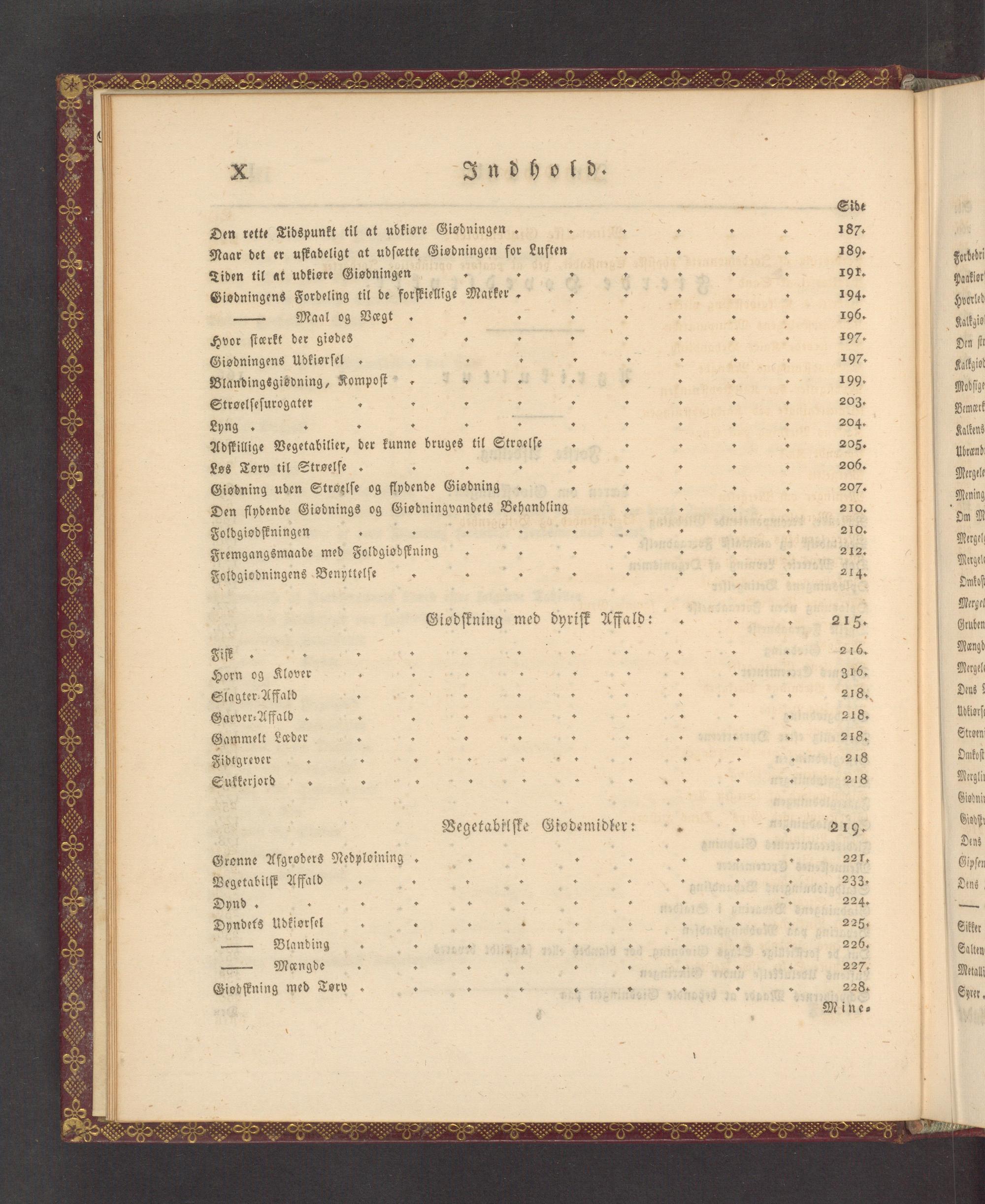 Tiden til at udkisre Gisdningen....... 191. Giedningens Fordeling til de forſkiellige Marker...... 194. — Maal og Vegt........ 196. Hvor ſteerkt der giodes....... 107. Giodningens Udkiosrſel........ 197. Blandingsgisdning, Kompoſt.....*.. 199. Stroelſeſurogater........ 203. Lyng.......... 204. Adſkillige Vegetabilier, der kunne bruges til Stroelſe..... 205. Los Torv til Stroelſe......... 206. Giodning uden Strselſe og flydende Giodning...... 207. Den flydende Giodnings og Giodningvandets Behandling.. 1. 210. Foldgiodſkningen........ 210. Fremgangsmaade med Foldgiodſkning....... 212. Foldgiodningens Benyttelſe........ 214. Giodſkning med dyriſk Affald:.. 1 215. Fiſt.......... 216. Horn og Klover. 8. 8.. 316. Slagter⸗Affald.. 3 86... 218. Garver⸗Affald........ 218. Gammelt Lader......—. 218. Fidtgrever........ 2 Sukkerjord...... 245 Vegetabilſke Giodemidler:... 219. Gronne Afgroders Nedpleining........ 221. Vegetabilſt Affald........ 2³3 Dynd. 3... 1.... 243 Dyndets Udkiorſel... 4... 225 Blanding...... 25. — Maengde..... 227 Giodſkning med Torv...—...„ 277 Mine⸗