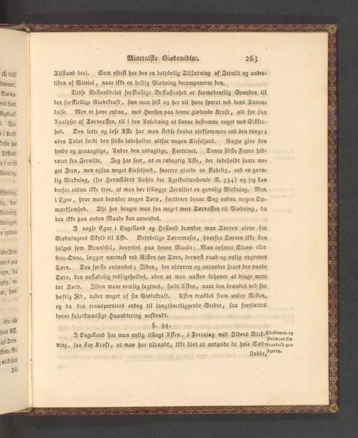 all disſe Tilſtand deri. Som ofteſt har den en betydelig Tilſcetning af Jernilt og under⸗ domonnet, tiden af Vitriol, naar ikke en heftig Glodning decomponerer den.