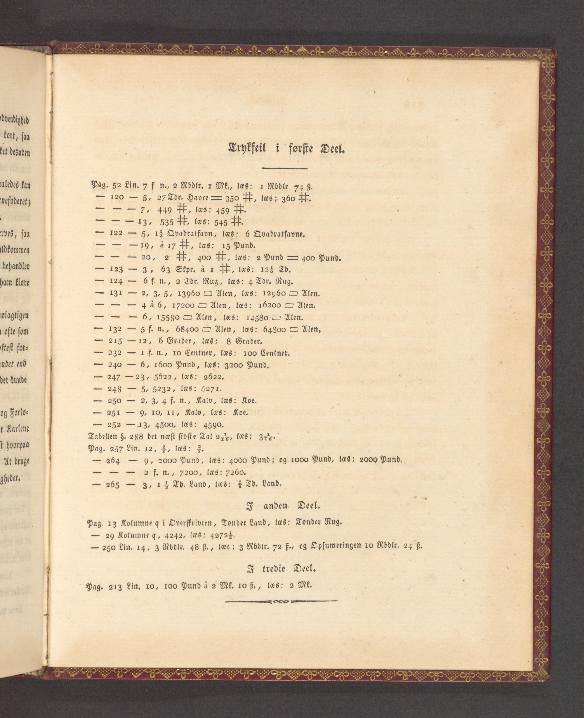 Tabellen§. 288 det naft ſidſte Tal 2 ½ ½, lœs: 3 22. Pag. 257 Lin. 12, 4, las: 3. — 264— 9, 2000 Pund, lœs: 4000 Pund; og 1000 Pund, las: 2000 Pund.