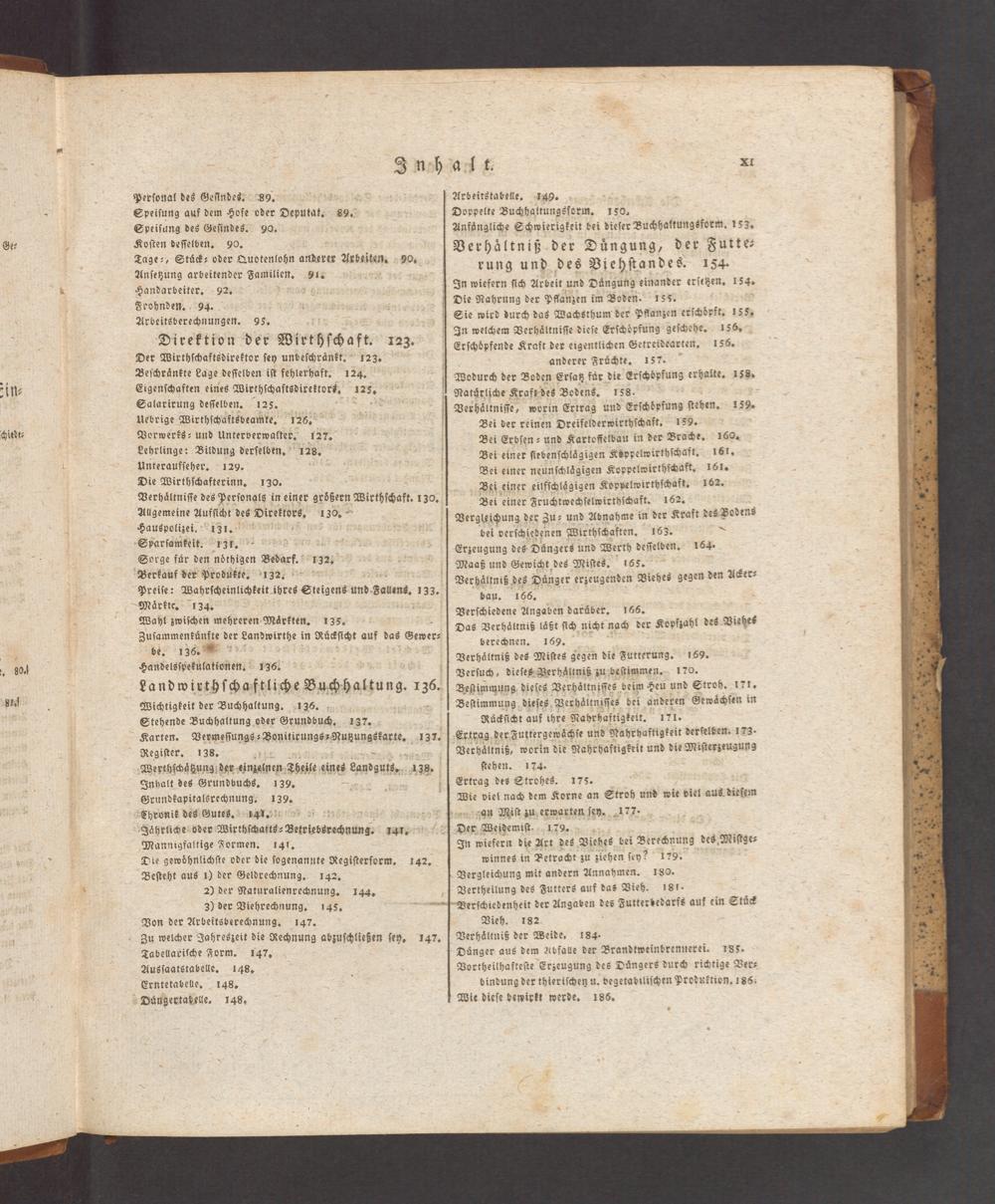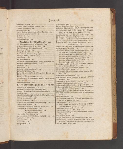 Vieh. 182 Verhäͤltnis der Weide, 184. Duͤnger aus dem Abfalle der Brandtweinbrennerei. 185. Vortheilhafteſte Erzeugung des Duͤngers durch richtige Ver⸗ bindung der thieriſchen u. vegetabiliſchen Produktion. 186. Wie dieſe hewirkt werde. 186.