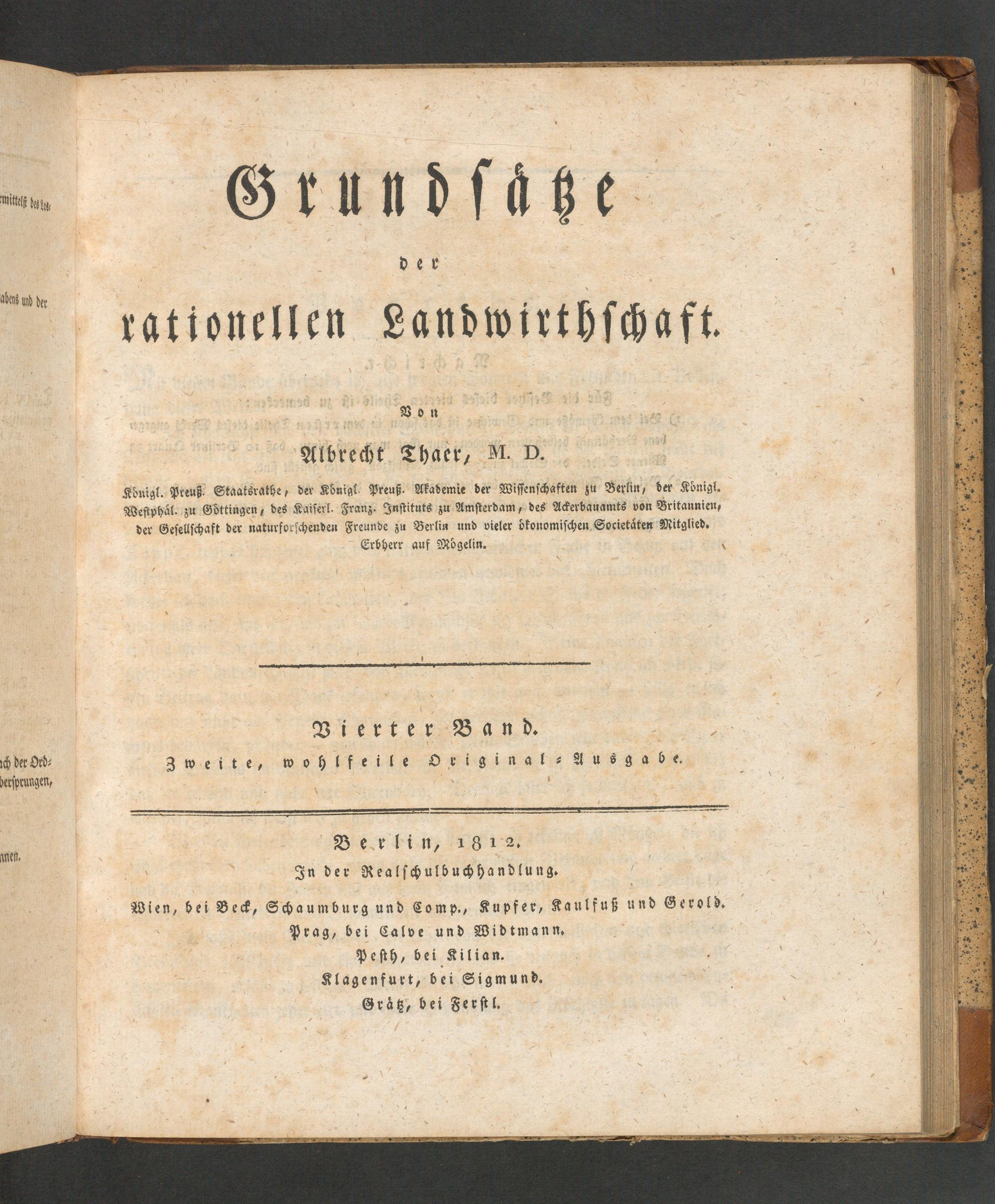 adens w der„„ 8 b ationellen Landwirthſchaft Von 2— Albrecht Thaer, M. D. Konigl. Preuß. Staatsrathe, der Koͤnigl. Preuß⸗ Akademie der Wiſſenſchaften zu Berlin, der Koͤnigl. Weſtphaͤl. zu Gottingen, des Kaiſerl. Franz. Inſtituts zu Amſterdam, des Ackerbauamts von Britannien, der Geſellſchaft der naturforſchenden Freunde zu Berlin und vieler ökonomiſchen Societaͤten Mitglied. Erbherr auf MRögelig. 4. W Vierter Band. ich der Od⸗ Zweite, wohlfeile Original⸗Ausgabe. 4 berſprungen, 1. 1 1 1 2. nen b Berlin, 1812. 4 1 In der Realſchulbuchhandlung.