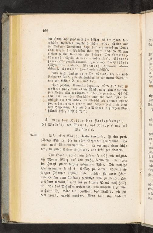 haͤltniß ſteht, nicht hierher.) d. Von der Kultur der Farbepflanzen, des Waid's, des Wau's, des Krapp's und des Saflor's.