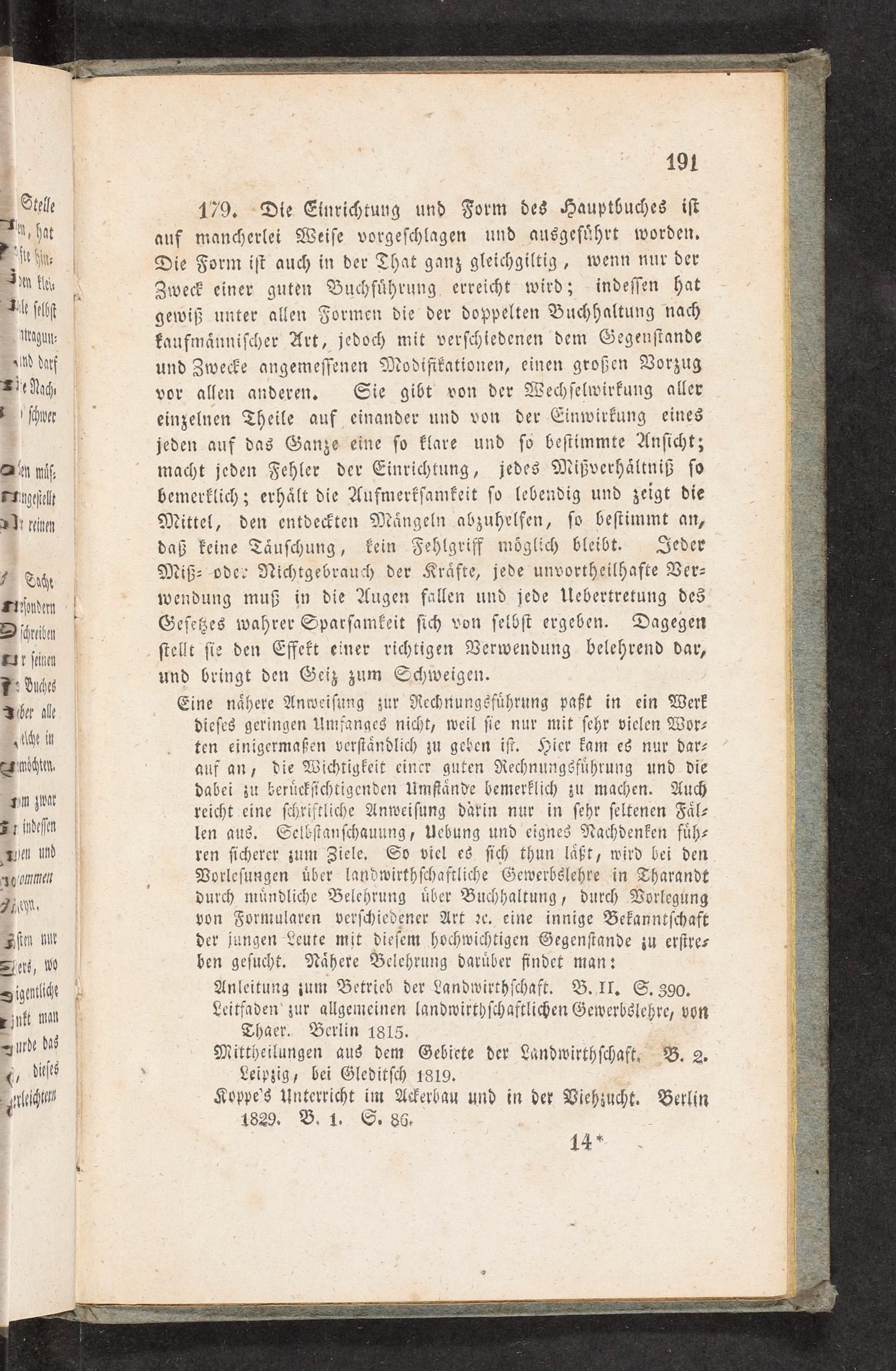 ee bhi zän reicht eine ſchriftliche Anweiſung darin nur in ſehr ſeltenen Faͤl⸗ *r indeſen len aus. Selbſtanſchauung, Uebung und eignes Nachdenken fuͤh⸗ en und ren ſicherer zum Ziele. So viel es ſich thun laͤßt, wird bei den adommen Vorleſungen uͤber landwirthſchaftliche Gewerbslehre in Tharandt 2 chn. durch muͤndliche Belehrung uͤber Buchhaltung, durch Vorlegung von Formularen verſchiedener Art ꝛc. eine innige Bekanntſchaft S ſten vut der jungen Leute mit dieſem hochwichtigen Gegenſtande zu erſtre⸗ Ders, wo ben geſucht. Naͤhere Belehrung daruͤber findet man: 1igertiche 4 Anleitung zum Betrieb der Landwirthſchaft. B. II. S. 390. ukt mun Leitfaden zur allsemeinen landwirthſchaftlichen Gewerbslehre, von Pun d Thaer. Berlin 1815. rN ¹ Mittheilungen aus dem Gebiete der Landwirthſchaft. B. 2. ditſes Leipzig, bei Gleditſch 1819. 1 erlächun Koppe's Unterricht im Ackerbau und in der Viehzucht. Berlin