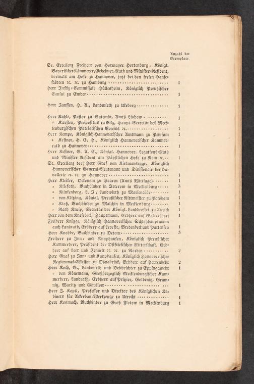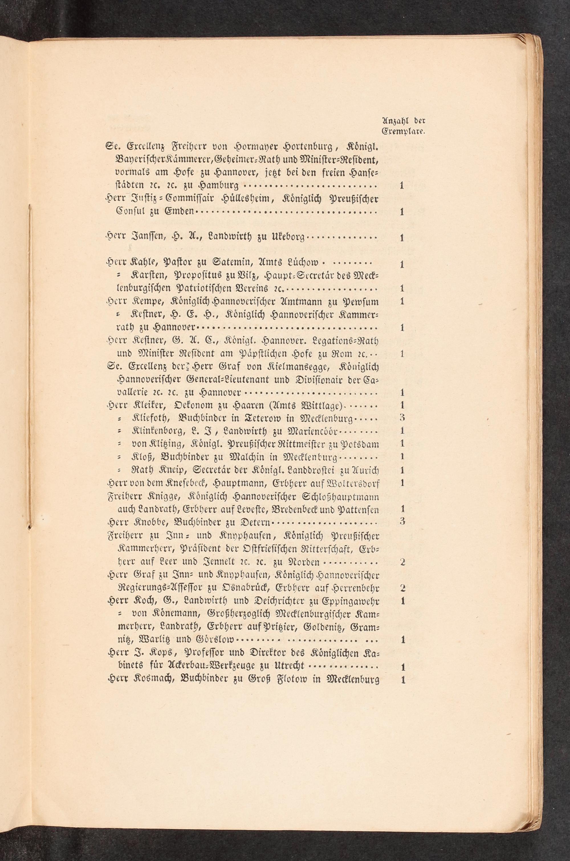 Freiherr Knigge, Koͤniglich Hannoveriſcher Schloßhauptmann auch Landrath, Erbherr auf Leveſte, Bredenbeck und Pattenſen Herr Knobbe, Buchbinder zu Deten..... Freiherr zu Inn⸗ und Knyphauſen, Koͤniglich Preußiſcher Kammerherr, Praͤſident der Oſtfrieſiſchen Ritterſchaft, Erb⸗ herr auf Leer und Jennelt ꝛc. ꝛc. zu Norden... Herr Graf zu Inn- und Knyphauſen, Koͤniglich Hannoveriſcher Regierungs-Aſſeſſor zu Osnabruͤck, Erbherr auf Herrenbehr Herr Koch, G., Landwirth und Deichrichter zu Eppingawehr - von Koͤnemann, Großherzoglich Mecklenburgiſcher Kam⸗ merherr, Landrath, Erbherr Ln reiere Galtenie, Gram⸗ nitz, Warlitz und Goͤrslow.. Herr J. Kops, Profeſſor und Direktor des Asnilich Ka⸗ binets fuͤr Ackerbau⸗Werkzeuge zu Utrecht.... Herr Kosmach, Buchbinder zu Groß Flotow in Mecklenburg