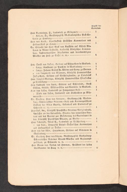 Exemplare. Herr Kromminga, F., Landwirth zu Eilingwehr...... 1 Kruͤger, D., Großherzoglich Mecklenburgiſcher Poſt⸗Se⸗ kretaͤr zu Hamburg...... ö 6