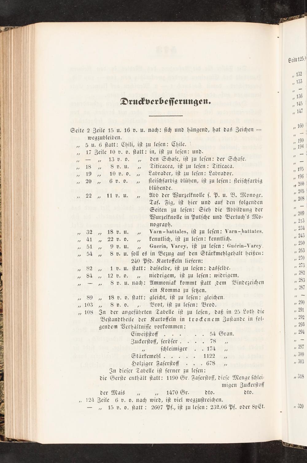 Eiweißſtoff..... 54 Gran. Zuckerſtoff, ſeröſer.. 78„ „ ſchleimiger.. 174„ Stärkemehl... 11122„ Holziger Faſerſtoff. 678 In dieſer Tabelle iſt ferner zu leſen: die Gerſte enthält ſtatt: 1190 Gr. Faſerſtoff, dieſe Menge ſchlei— migen Zuckerſtoff der Mais 21„ 1470 Gr. dto. dto. 124 Zeile 6 v. o. nach wird, iſt viel wegzuſtreichen. —„ 15 v. o. ſtatt: 2607 Pf., iſt zu leſen: 232.06 Pf. oder 8pCt.
