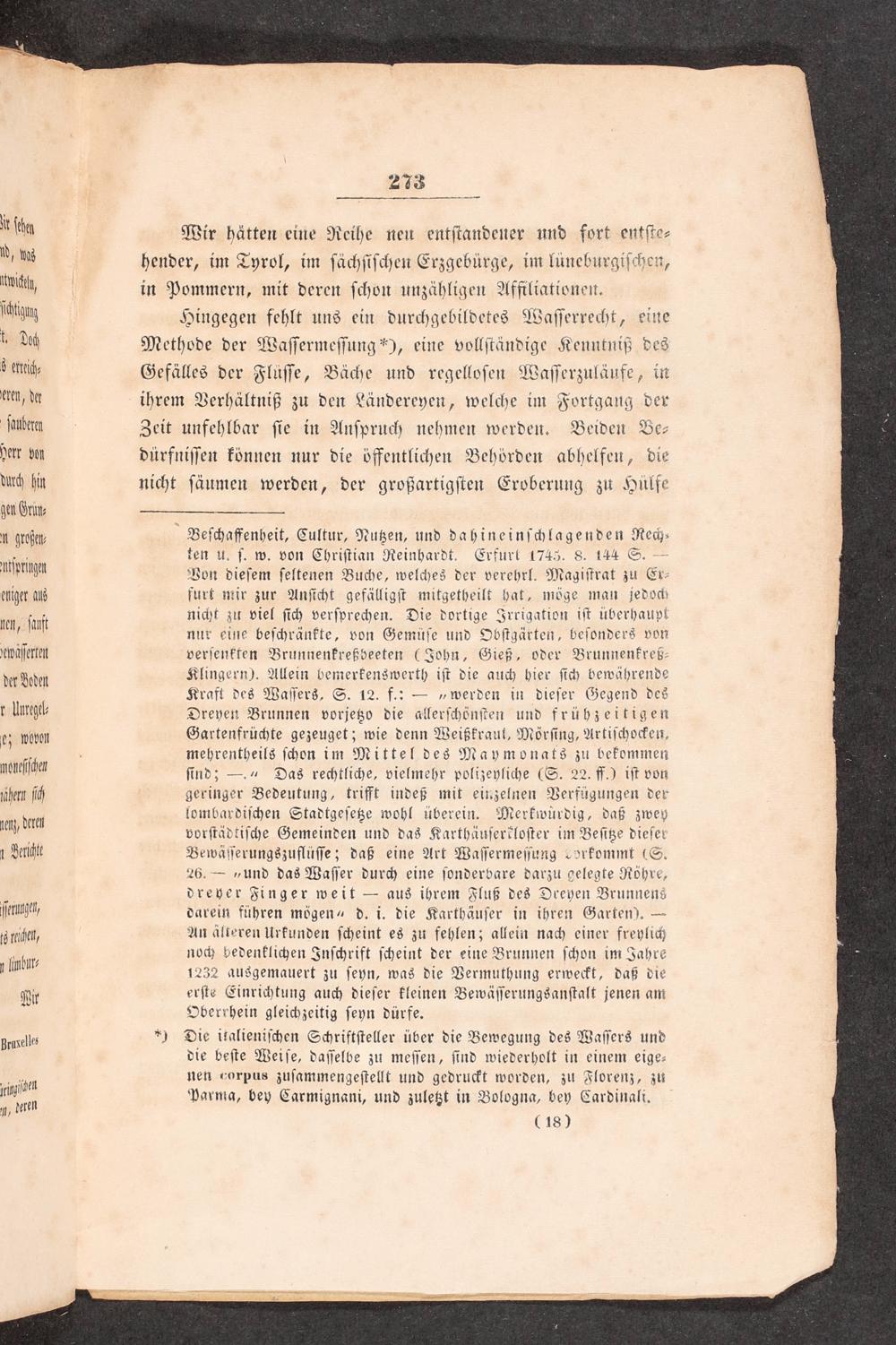 r ſche Wir hätten eine Reihe neu entſtandener und fort entſte⸗ d, ns hender, im Tyrol, im ſächſiſchen Erzgebürge, im lüneburgiſchen, nmüt in Pommern, mit deren ſchon unzähligen Affiliationen. ſſin Hingegen fehlt uns ein durchgebildetes Waſſerrecht, eine t. dot Methode der Waſſermeſſung), eine vollſtändige Kenntniß des zerrech⸗ Gefälles der Fluͤſſe, Bäche und regelloſen Waſſerzuläufe, in eren, der ihrem Verhältniß zu den Ländereyen, welche im Fortgang der ſaubetn Zeit unfehlbar ſie in Anſpruch nehmen werden. Beiden Be⸗ Herr von dürfniſſen können nur die öffentlichen Behörden abhelfen, die durch hin nicht ſäumen werden, der großartigſten Eroberung zu Huͤlfe gen Gruͤn⸗ en großen⸗ Beſchaffenheit, Cultur, Nutzen, und dahineinſchlagenden Rech⸗