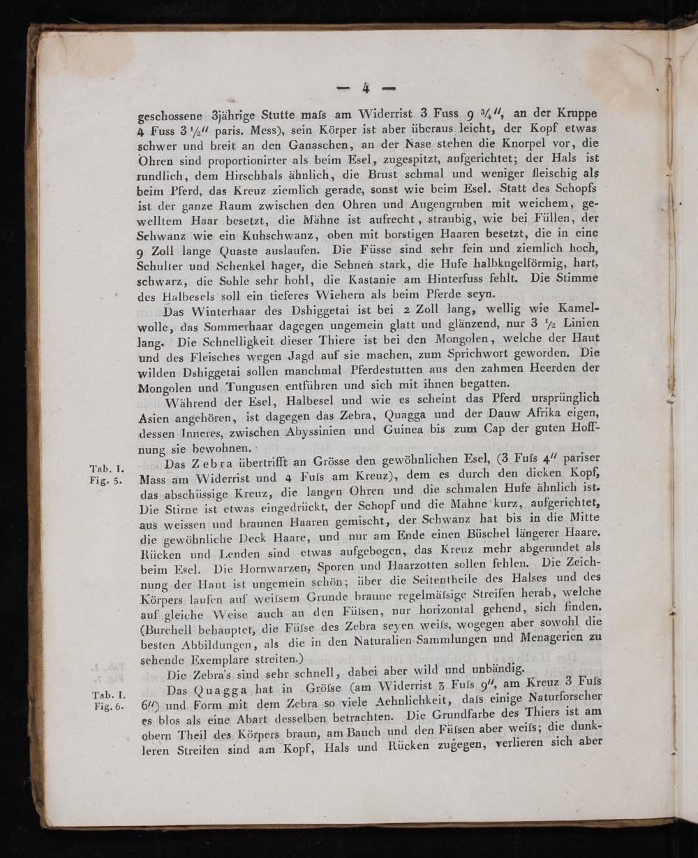 Während der Esel, Halbesel und wie es scheint das Pferd ursprünglich Asien angehören, ist dagegen das Zebra, Quagga und der Dauw Afrika eigen, dessen Inneres, zwischen Abyssinien und Guinea bis zum Cap der guten Hoff- nung sie bewohnen.