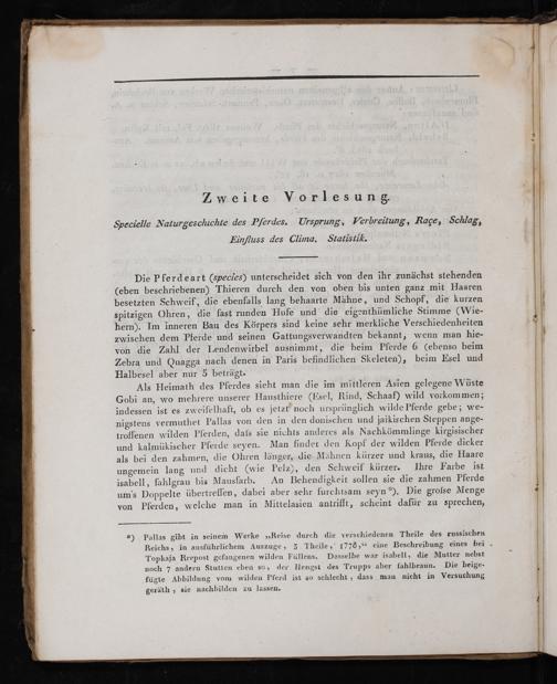 Sᷓpecielle Naturgeschichte des Pſerdes. Ursprung, Verbreitung, Rage, Schlag, Einfluss des Clima. Statistik.