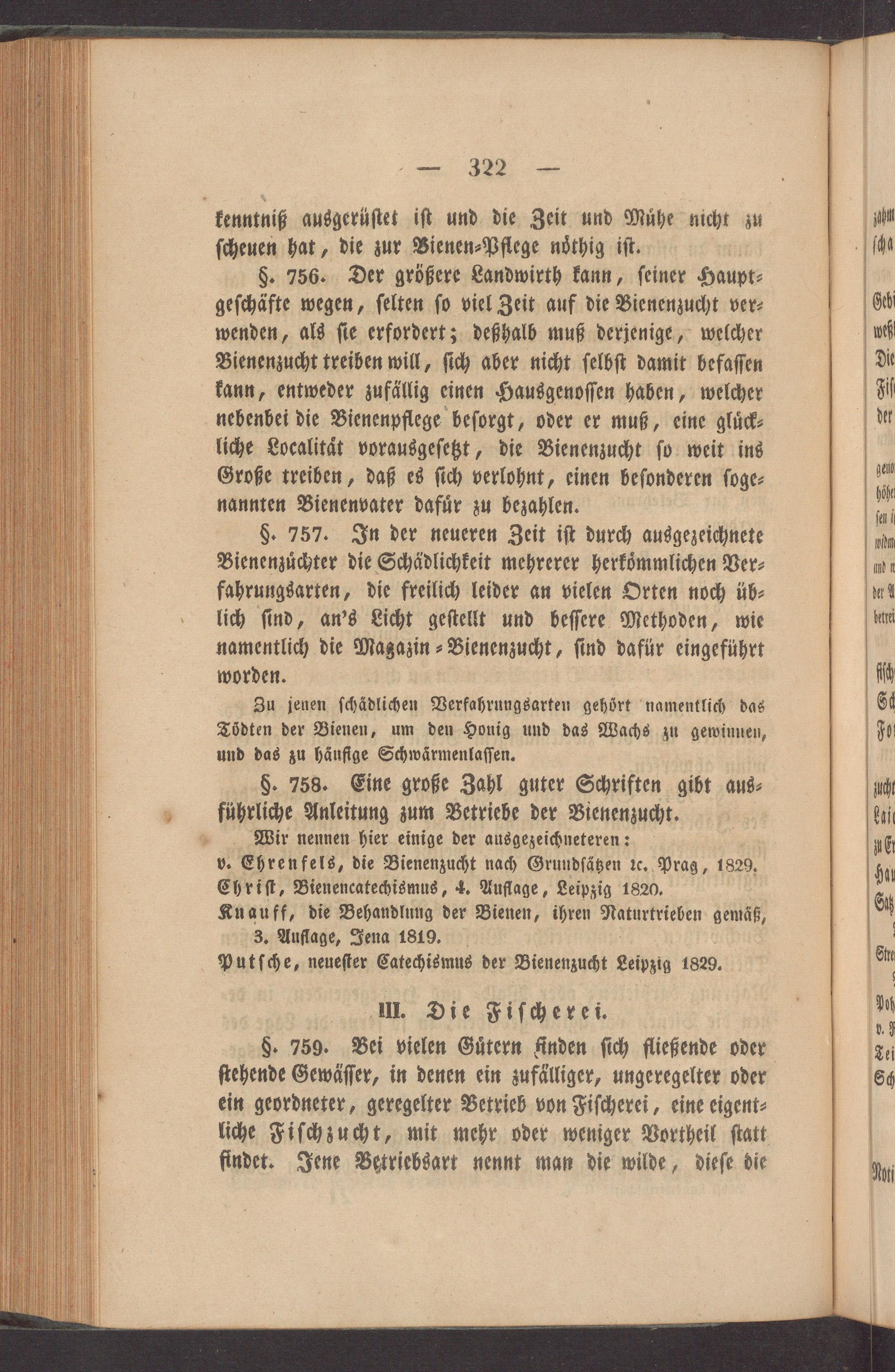 führliche Anleitung zum Betriebe der Bienenzucht. . Wir nennen hier einige der ausgezeichneteren: v. Ehrenfels, die Bienenzucht nach Grundſätzen ꝛc. Prag, 1829. Chriſt, Bienencatechismus, 4. Auflage, Leipzig 1820. Knauff, die Behandlung der Bienen, ihren Naturkrieben gemäß,