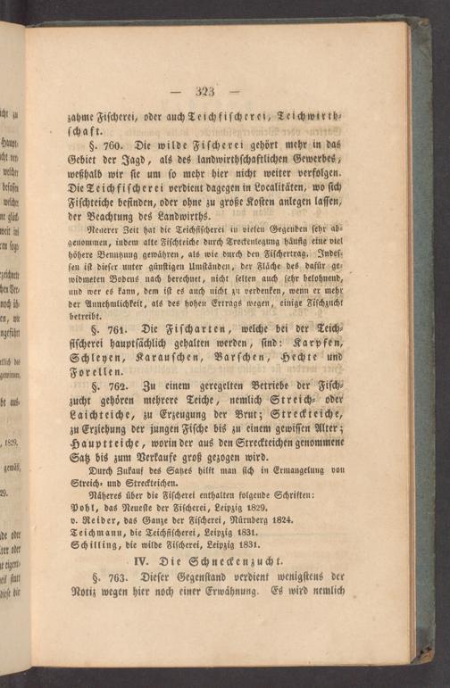 9. Näheres über die Fiſcherei enthalten folgende Schriften: Pohl, das Neueſte der Fiſcherei, Leipzig 1829. v. Reider, das Ganze der Fiſcherei, Nürnberg 1824.