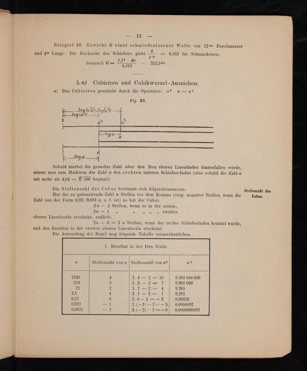 a) Das Cubiciren geschieht durch die Operation: a². a= as Eig. 25. og(a 2) l09.— logP(ν— 2 5 652 2 1 f -— 19 2— 2a,e 71 4— 2