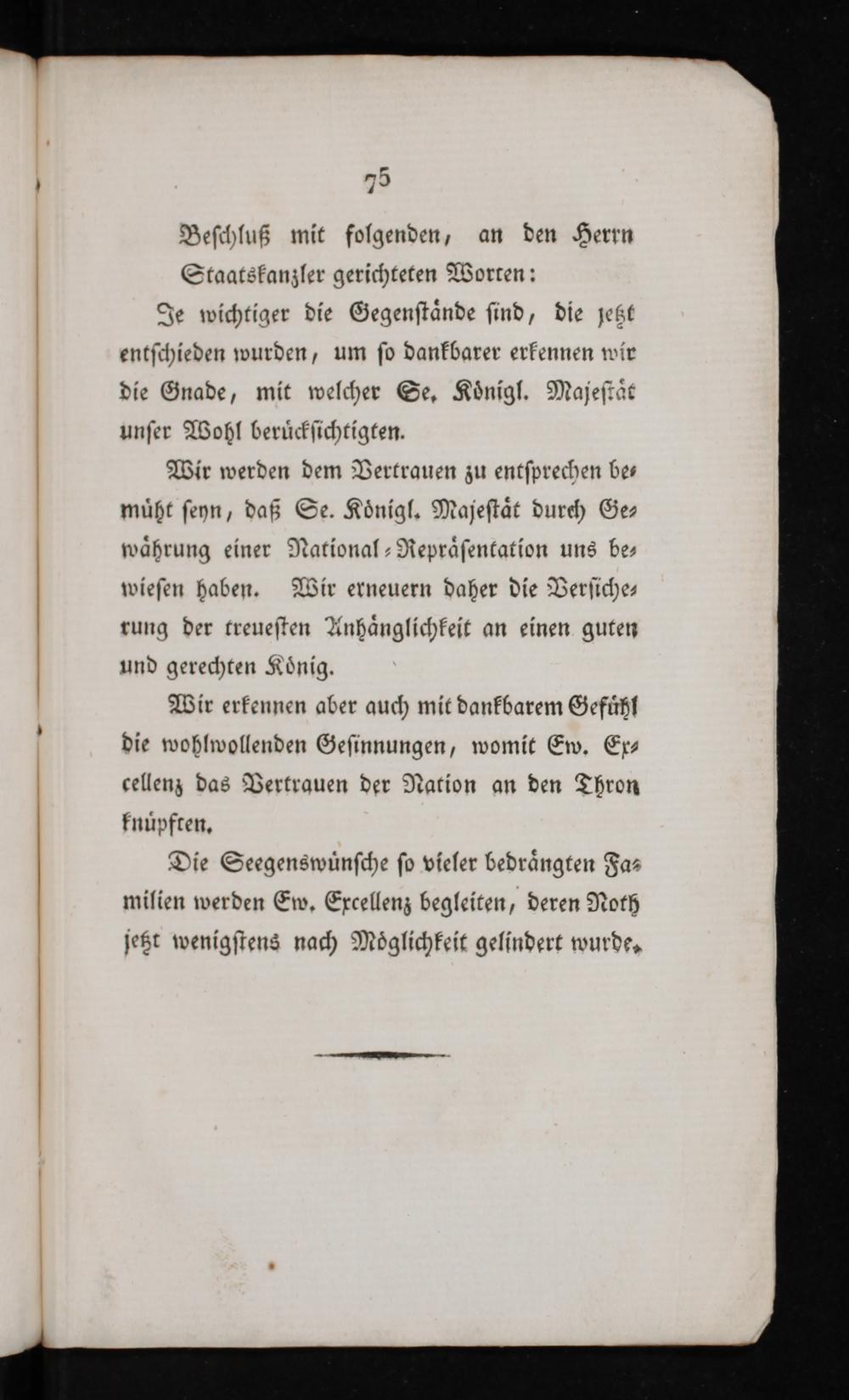 Beſchluß mit folgenden, an den Herrn Staatskanzler gerichteten Worten: