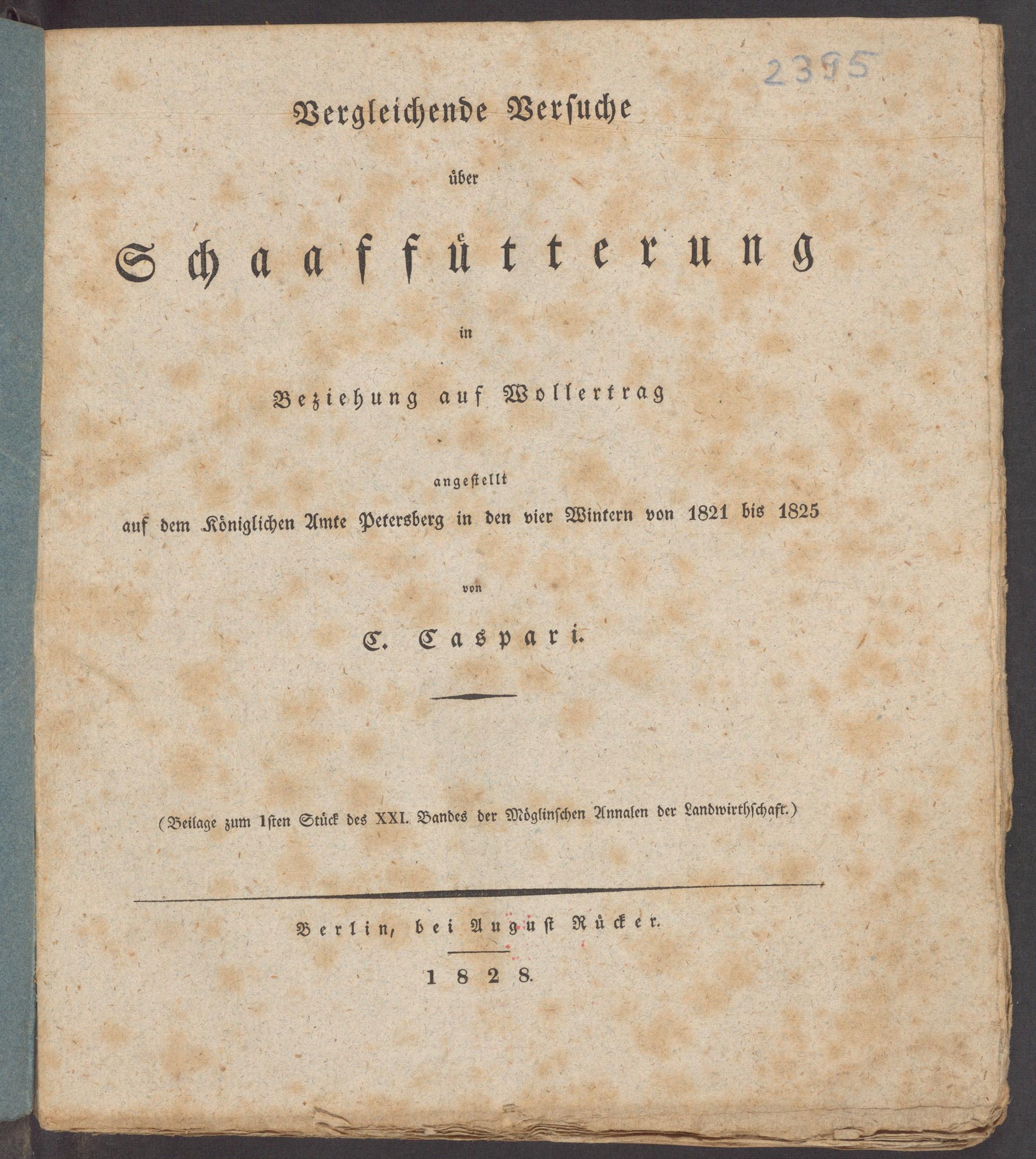 (Beilage zum Iſten Stuͤck des XXI. Bandes der Moͤglinſchen Annalen der Landwirthſchaft.)