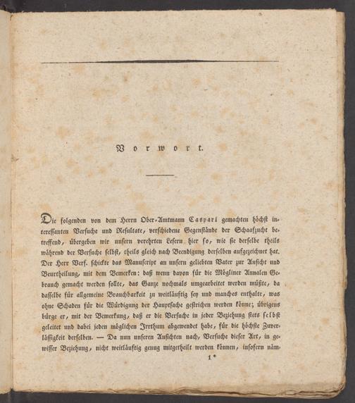 b De folgenden von dem Herrn Ober⸗Amtmann Caspari gemachten hoͤchſt in⸗ tereſſanten Verſuche und Reſultate, verſchiedene Gegenſtaͤnde der Schaafzucht be⸗