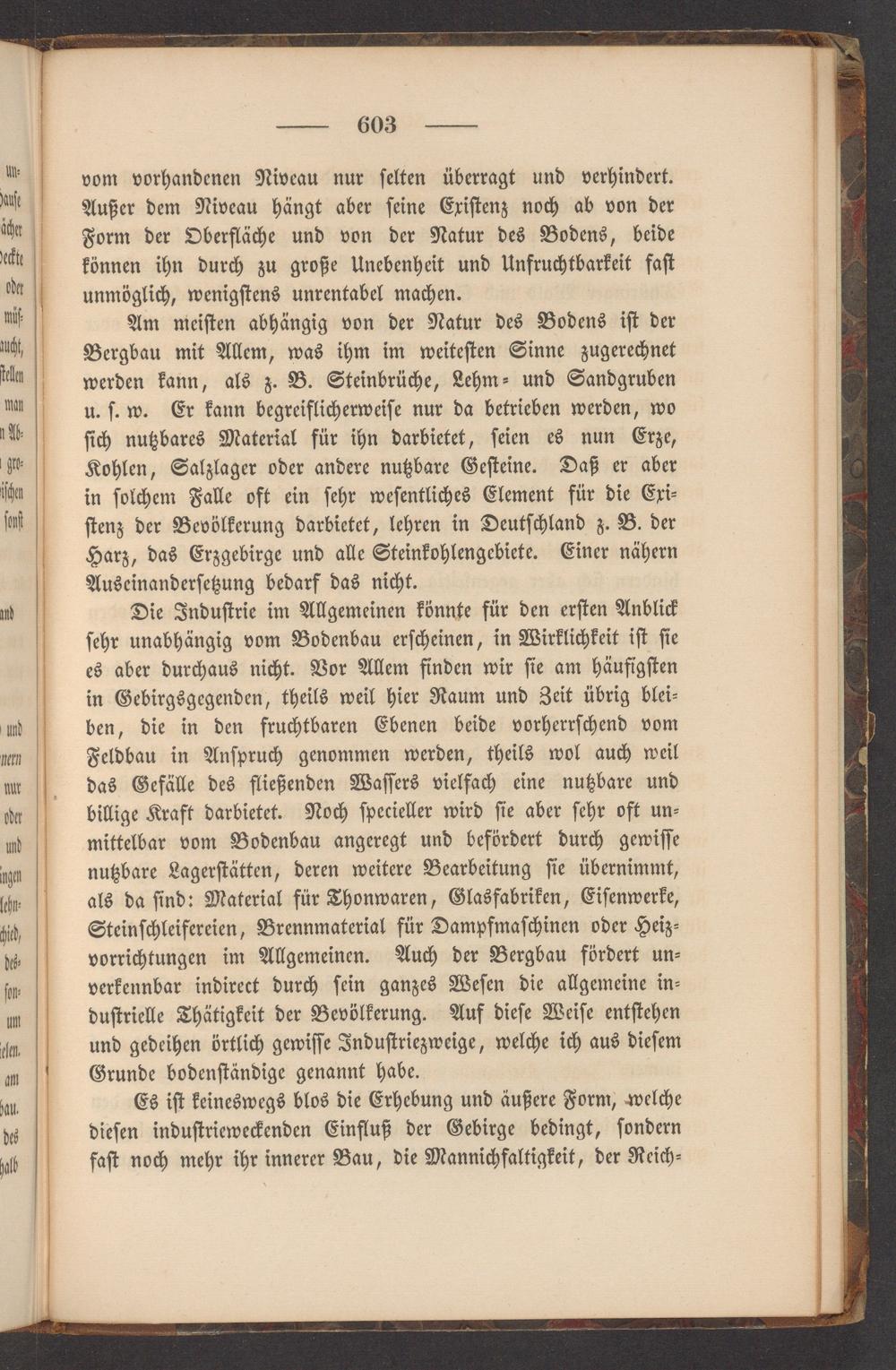 Es iſt keineswegs blos die Erhebung und äußere Form, welche dieſen induſtrieweckenden Einfluß der Gebirge bedingt, ſondern faſt noch mehr ihr innerer Bau, die Mannichfaltigkeit, der Reich⸗