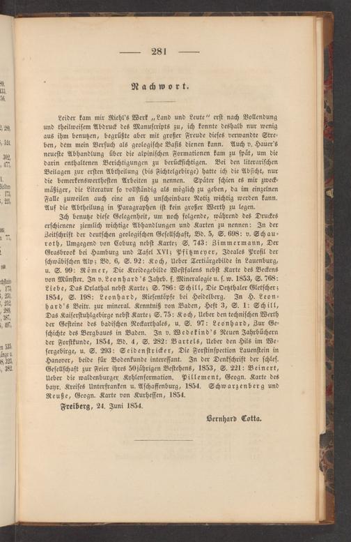 Freiberg, 24. Juni 1854. Bernhard Cotta.