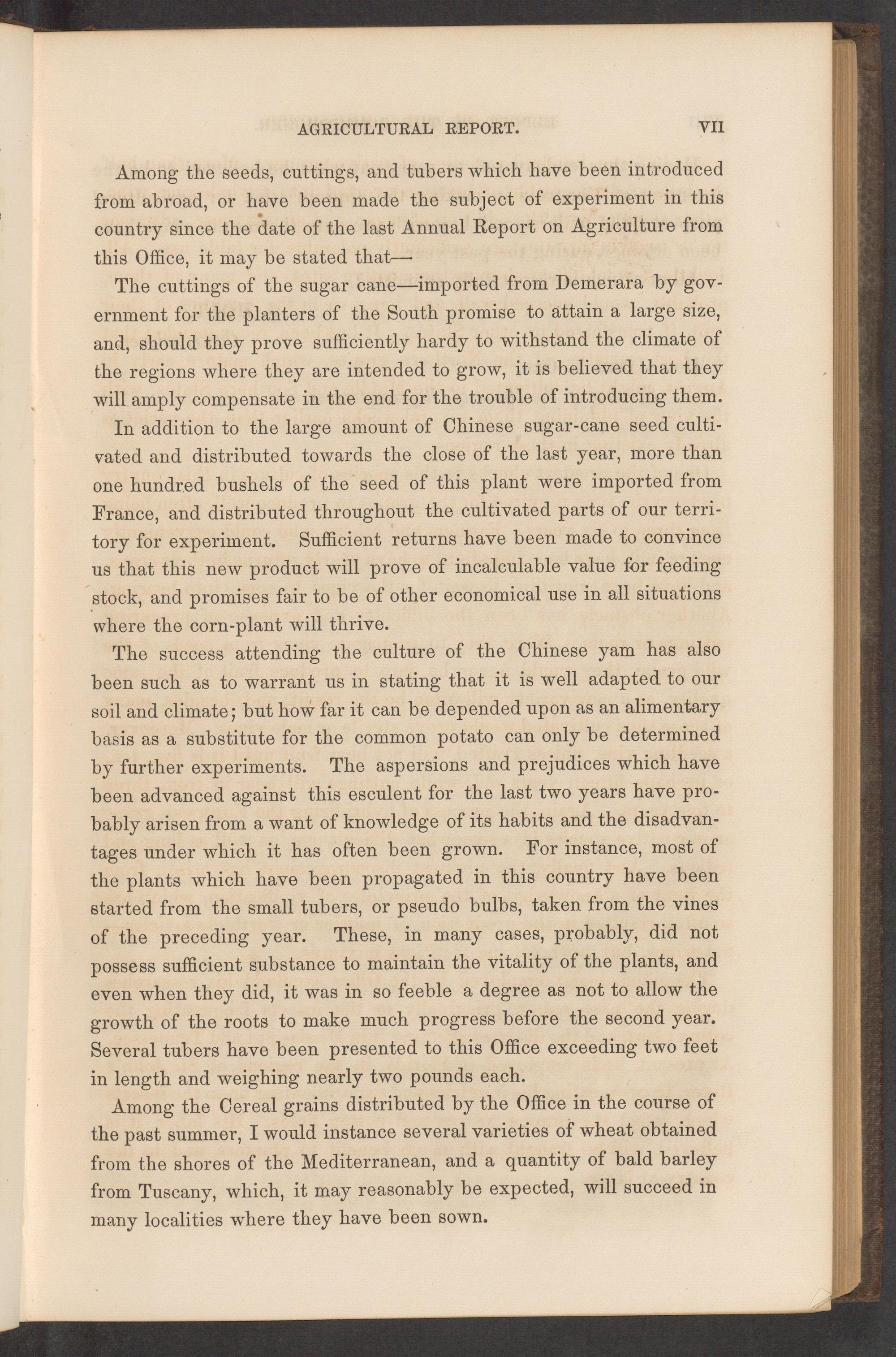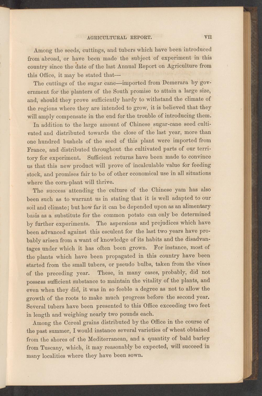 Among the Cereal grains distributed by the Office in the course of the past summer, I would instance several varieties of wheat obtained from the shores of the Mediterranean, and a quantity of bald barley from Tuscany, which, it may reasonably be expected, will succeed in