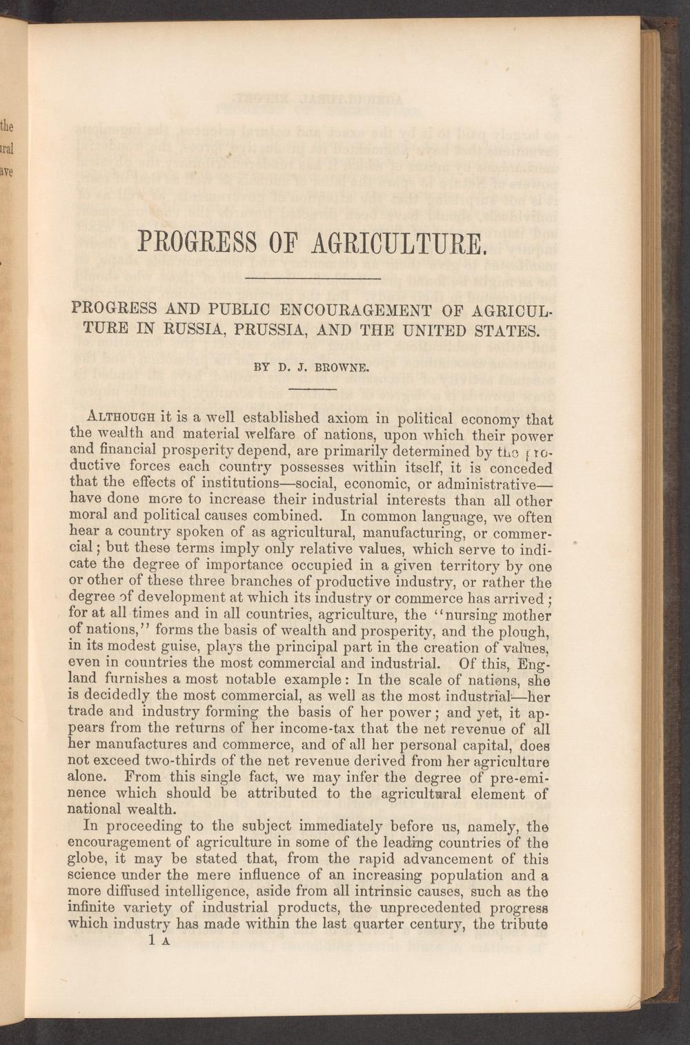 In proceeding to the subject immediately before us, namely, the encouragement of agriculture in some of the leading countries of the globe, it may be stated that, from the rapid advancement of this science under the mere influence of an increasing population and a more diffused intelligence, aside from all intrinsic causes, such as the infinite variety of industrial products, the unprecedented progress which industry has made within the last quarter century, the tribute