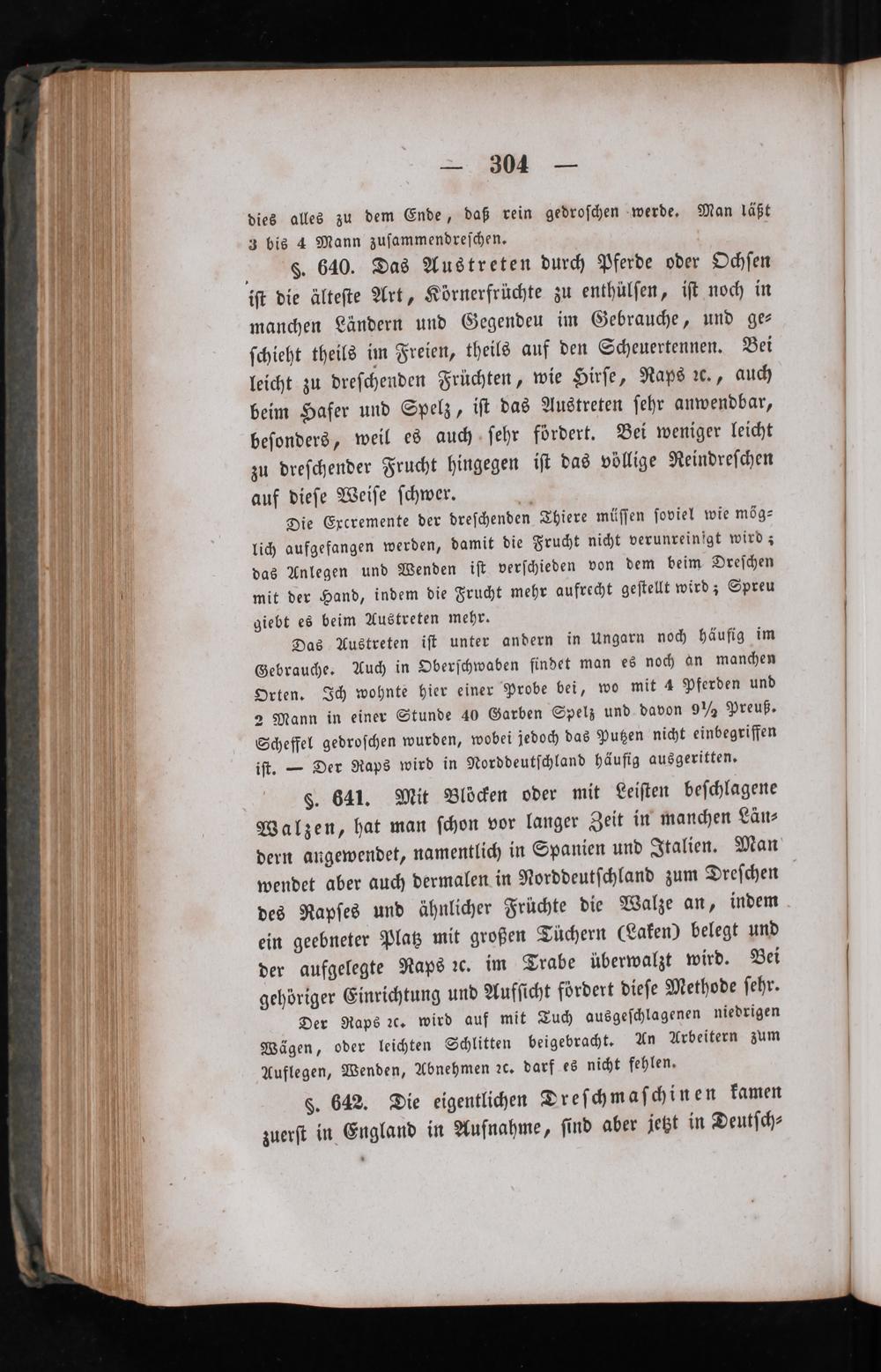 dies alles zu dem Ende, daß rein gedroſchen werde. Man läßt 3 bis 4 Mann zuſammendreſchen. §. 640. Das Austreten durch Pferde oder Ochſen