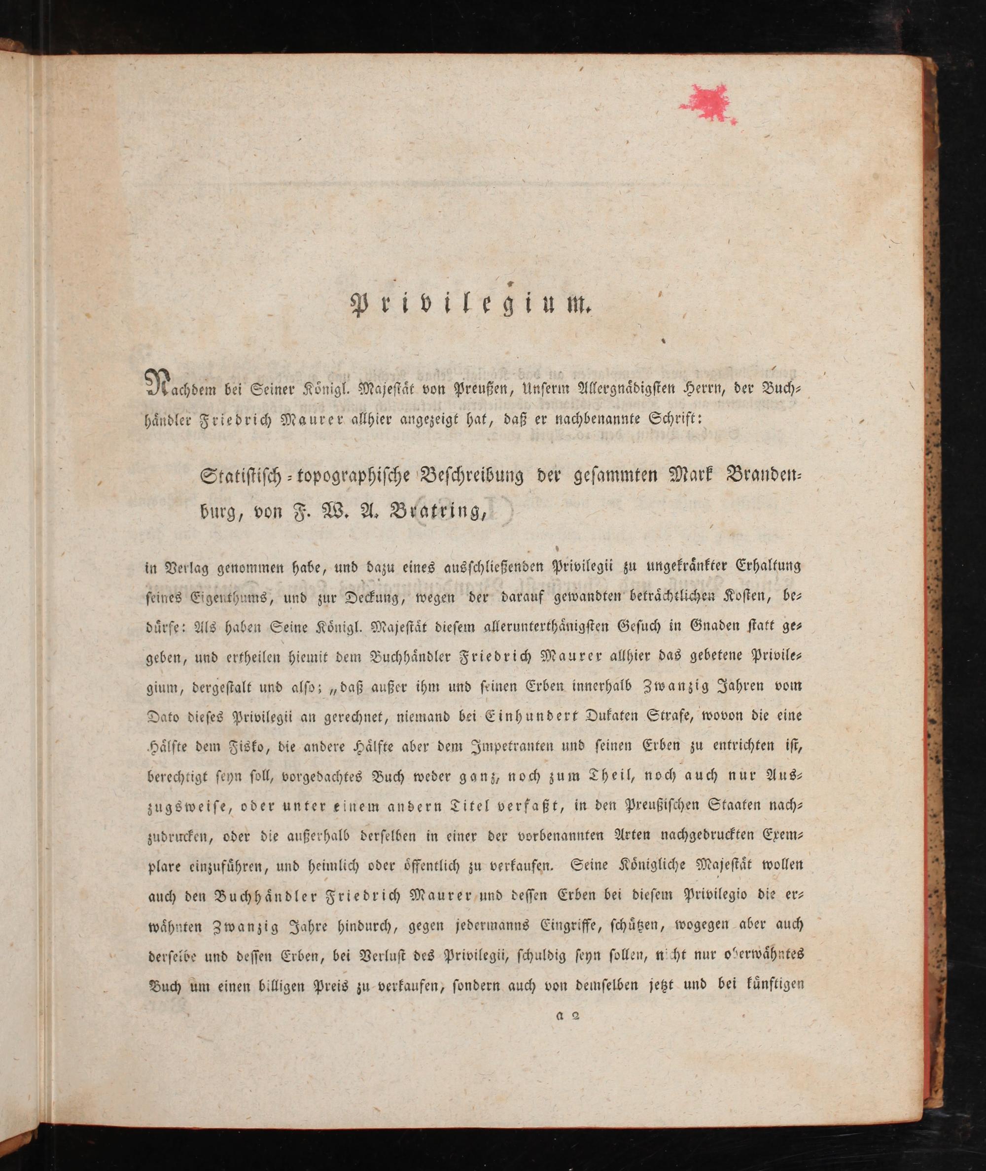 1 (1804) Die allgemeine Einleitung zur Kurmark, die Altmark und Prignitz enthaltend / von F.W.A. Bratring