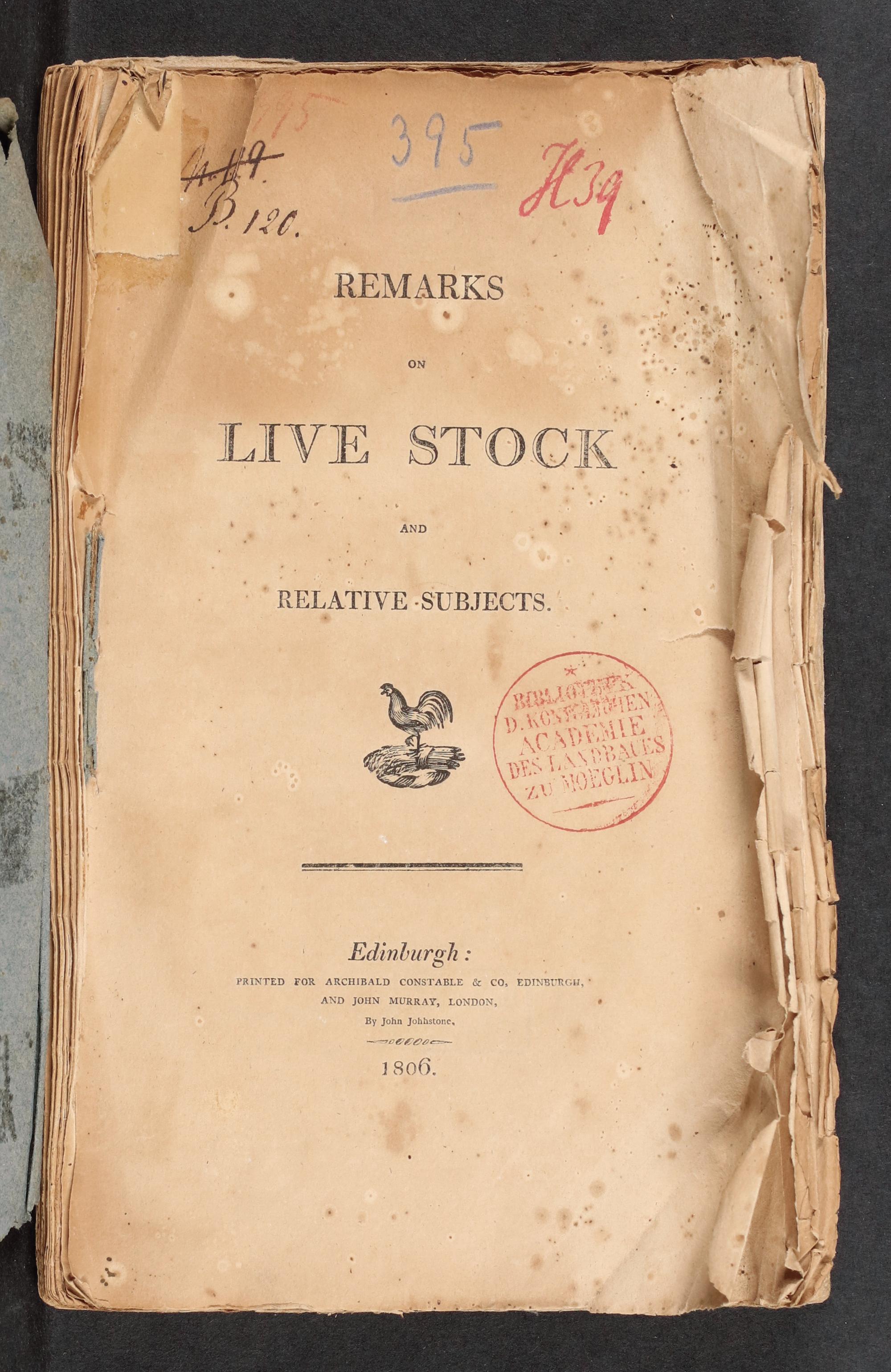 Remarks on live stock and relative subjects / [by Andrew Coventry]