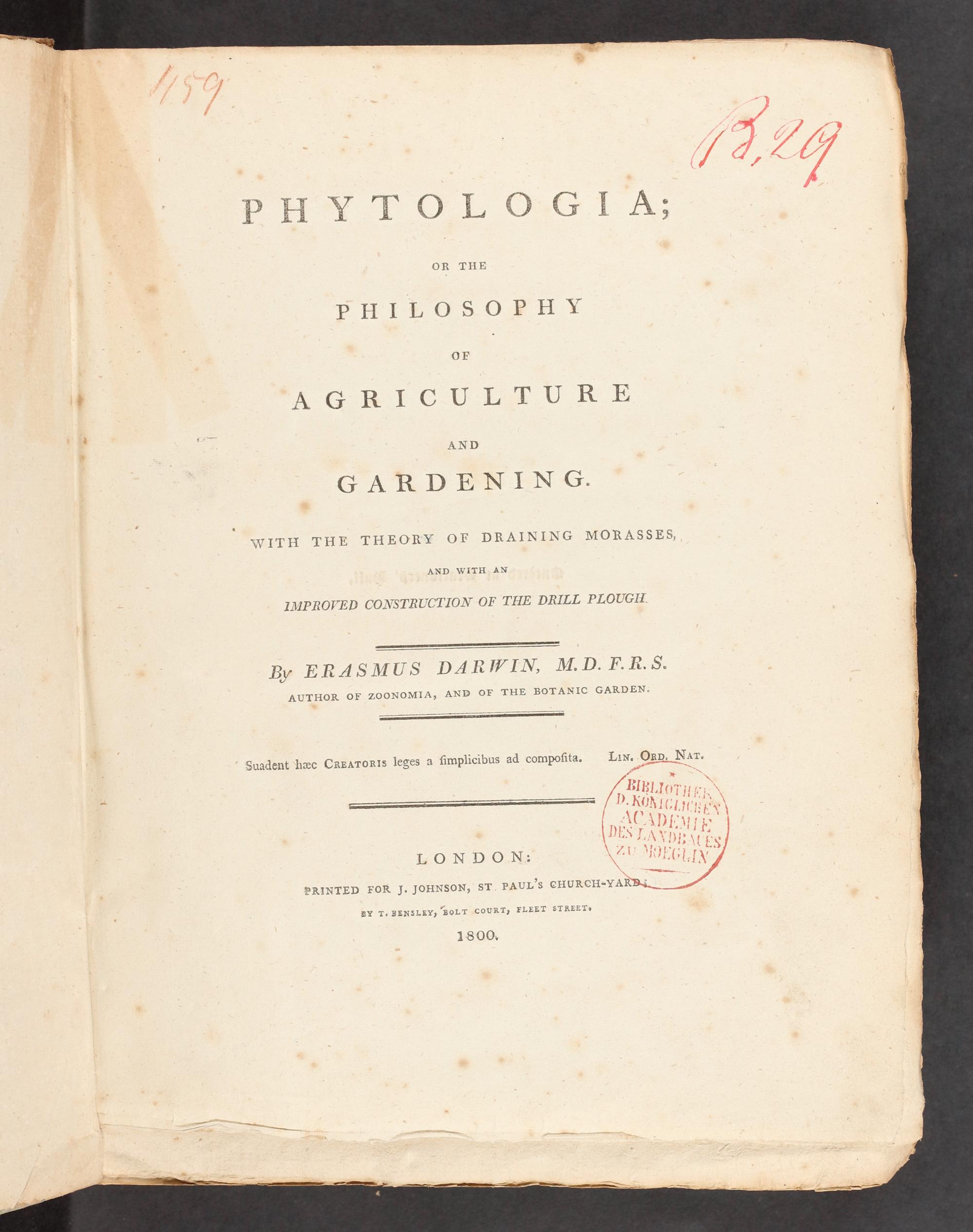 Phytologia; Or The Philosophy Of Agriculture And Gardening : With The Theory Of Draining Morasses, And With An Improved Construction Of The Drill Plough / By Erasmus Darwin