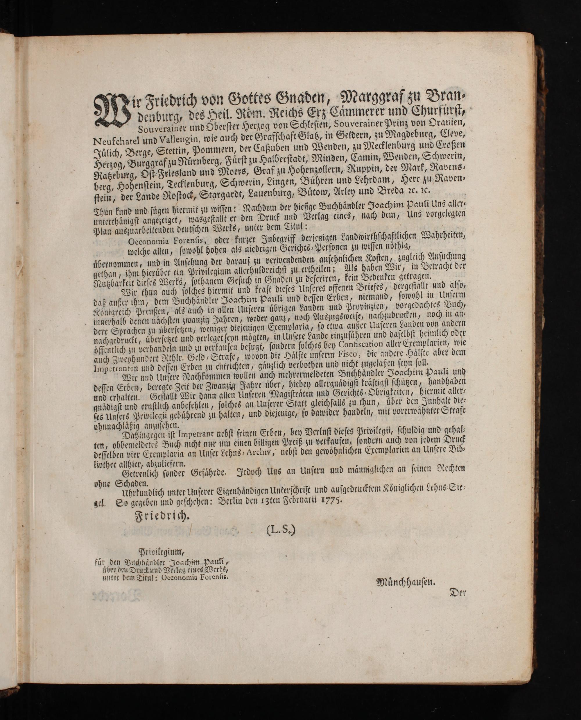 Oeconomia Forensis oder kurzer Inbegriff derjenigen Landwirthschaftlichen Wahrheiten, welche allen sowohl hohen als niedrigen Gerichts-Personen zu wissen nöthig