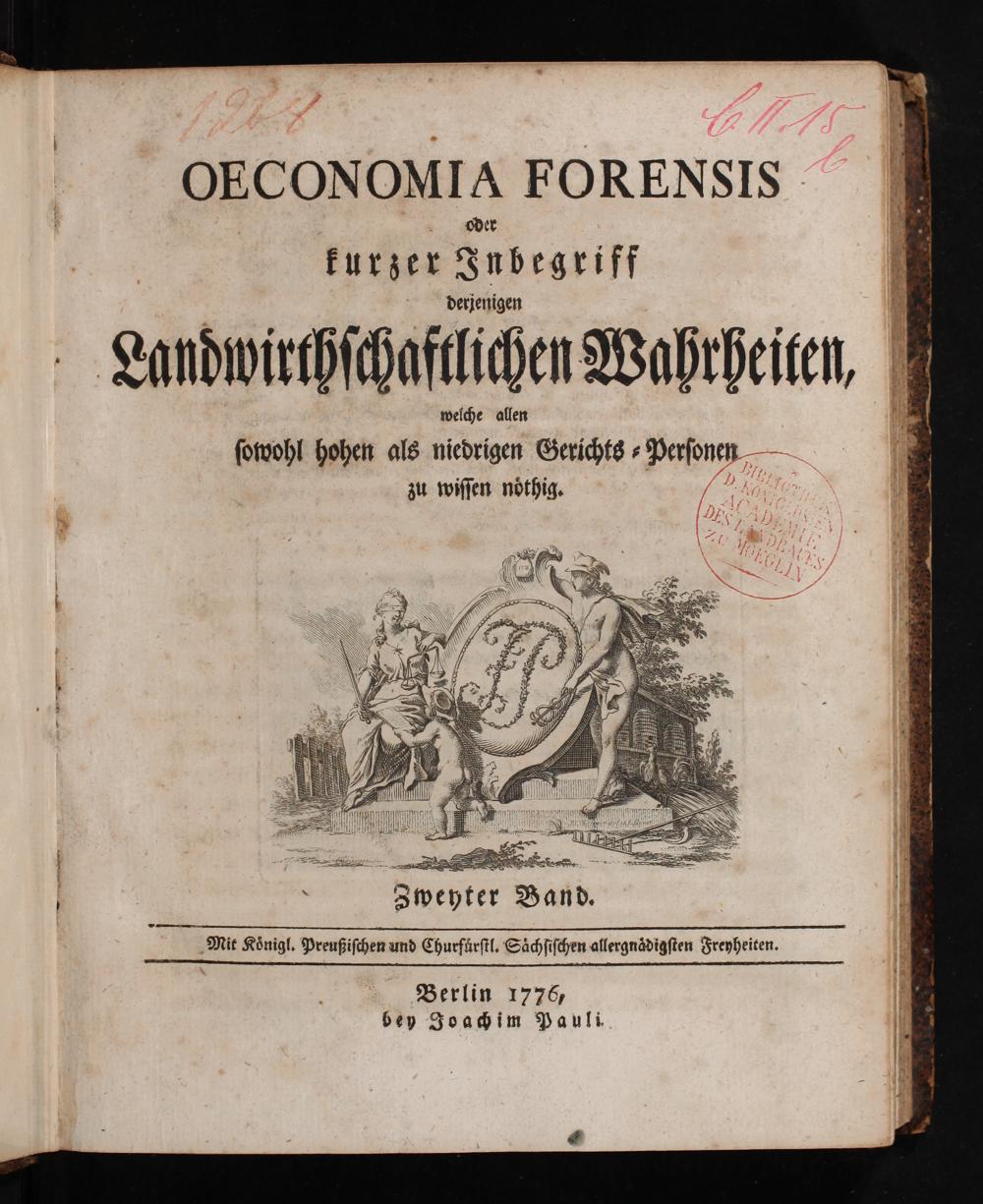 Oeconomia Forensis oder kurzer Inbegriff derjenigen Landwirthschaftlichen Wahrheiten, welche allen sowohl hohen als niedrigen Gerichts-Personen zu wissen nöthig
