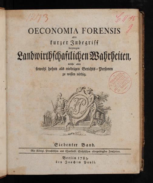 Oeconomia Forensis oder kurzer Inbegriff derjenigen Landwirthschaftlichen Wahrheiten, welche allen sowohl hohen als niedrigen Gerichts-Personen zu wissen nöthig