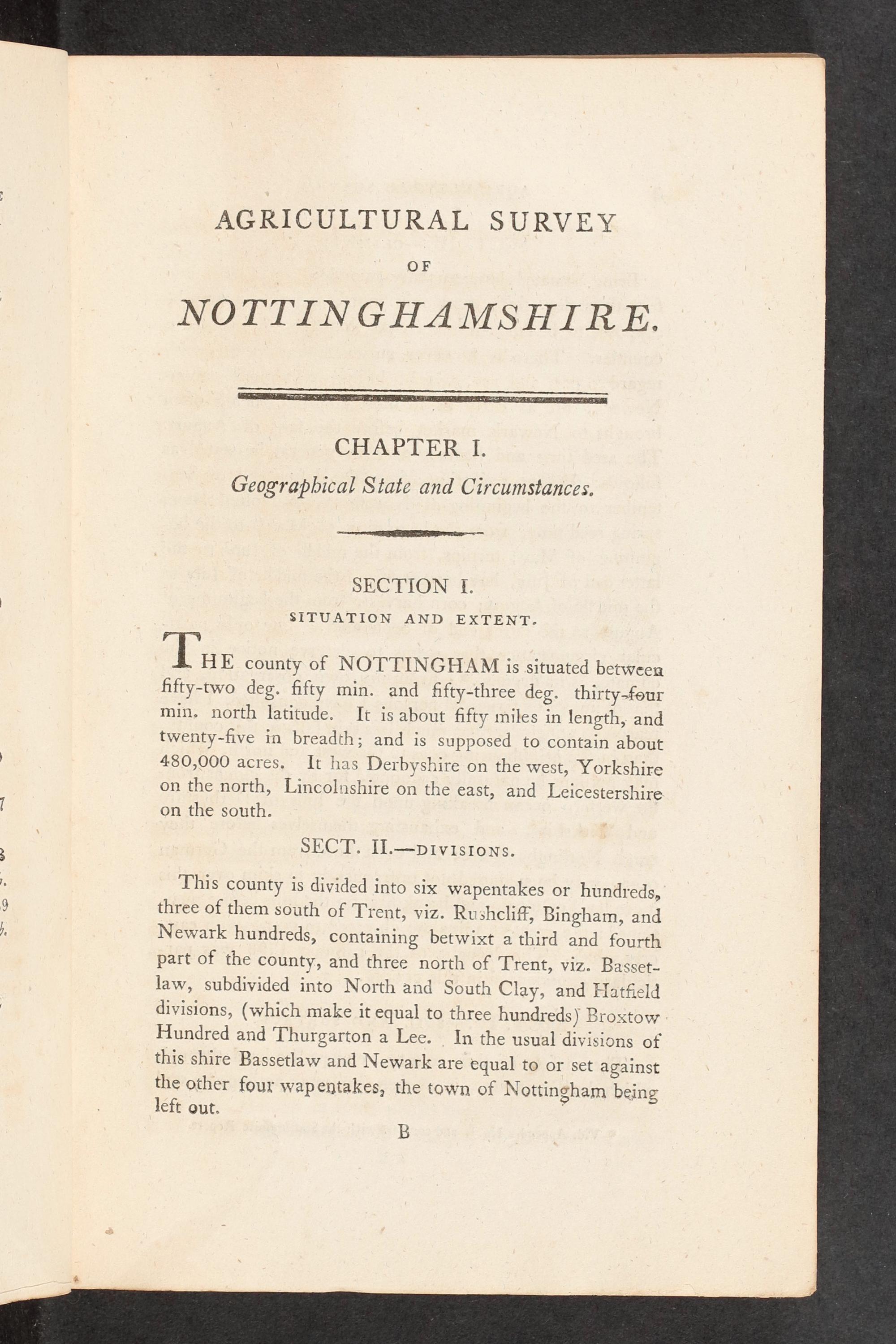 General view of the agriculture of the county of Nottingham : with observations on the means of its improvement / draw up for the Consideration of the Board of Agriculture and Internal Improvement by Robert Lowe