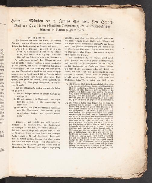 Über den Dünger, zugleich aber auch über das Unwesen dabey in Deutschland, besonders in der Haupt- und Residenzstadt München und ganz Baiern ... / von Hazzi. Vorgetr. i. d. öff. Vers. d. landwirthsch. Vereins in München. M. e. Beil. über die Hornviehstallungen d. kgl. würt. Versuchs-Lehranst. zu Hohenheim ... von ... Schwerz