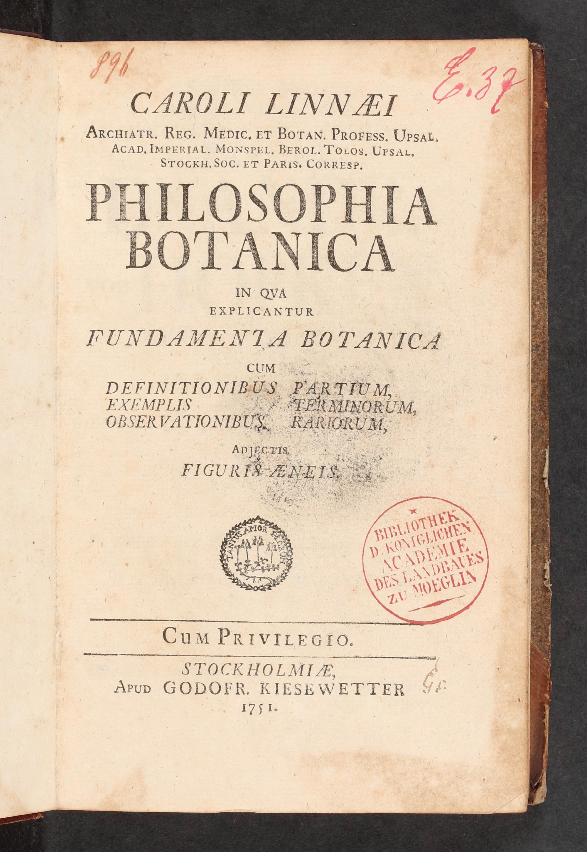 Caroli Linnaei Archiatr. Reg. Med. ... Philosophia Botanica, in qua explicantur fundamenta botanica : cum definitionibus partium, exemplis terminorum, observationibus rariorum, adiectis figuris aeneis