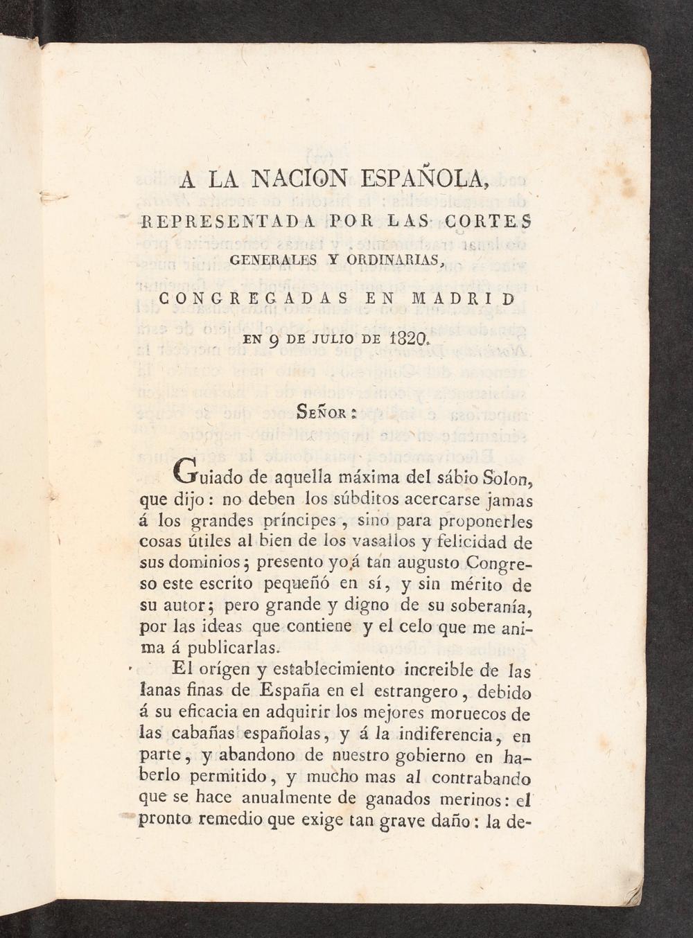 Noticia Del Origen Y Establecimiento Increible De Las Lanas Finas De España En El Extrangero : Por Culpa nuestra En No Haber Impedido Mejor La Extraccion De Nuestro Ganado Lanar : Y un discurso sobre el origen del ganado lanar trashumante, el del Concejo de la Mesta, y Cabaña Real / por El Dr. D. Baltasar Antonio Zapata