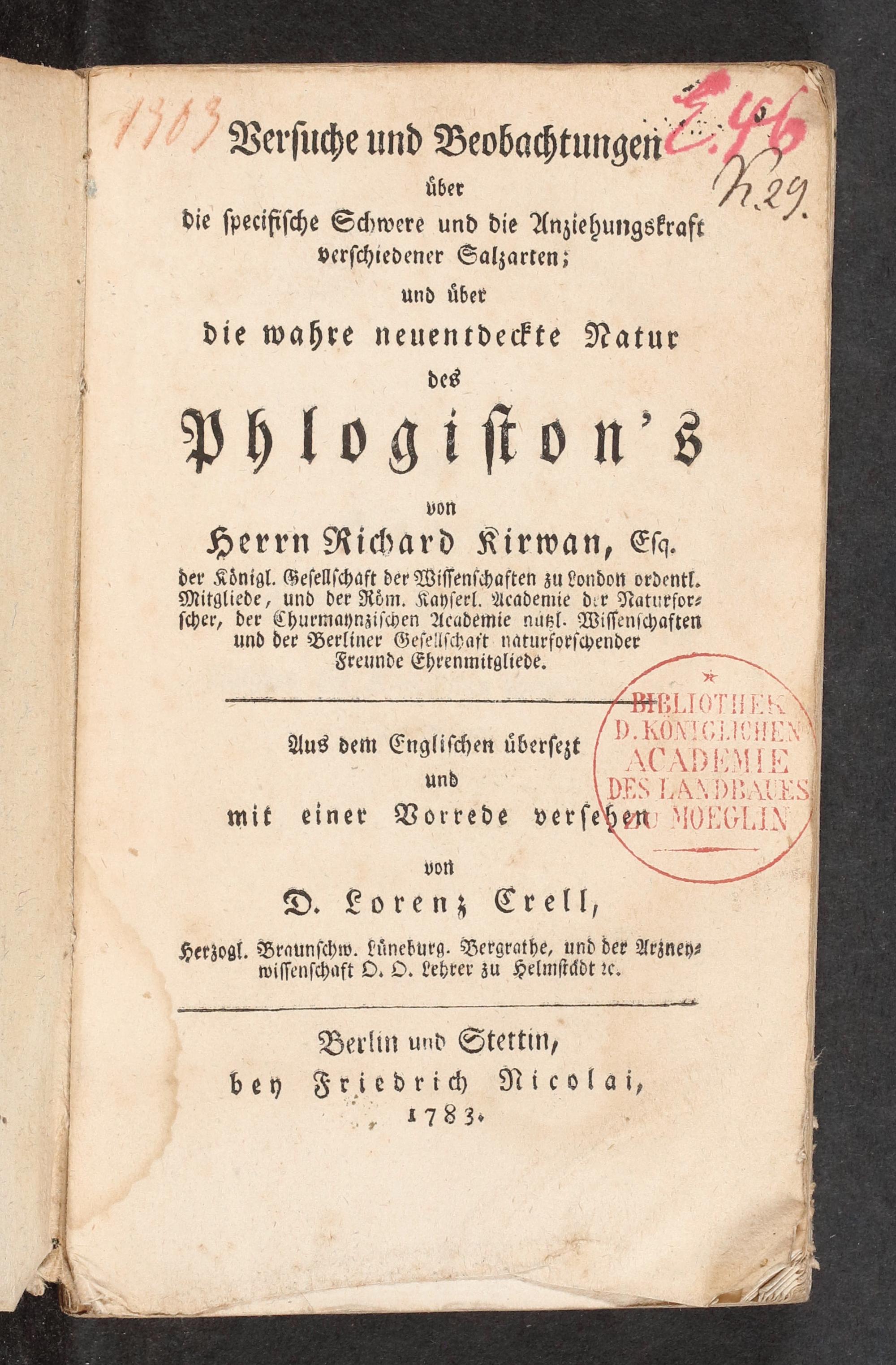 Versuche und Beobachtungen über die specifische Schwere und die Anziehungskraft verschiedener Salzarten und über die wahre neuentdeckte Natur des Phlogiston's