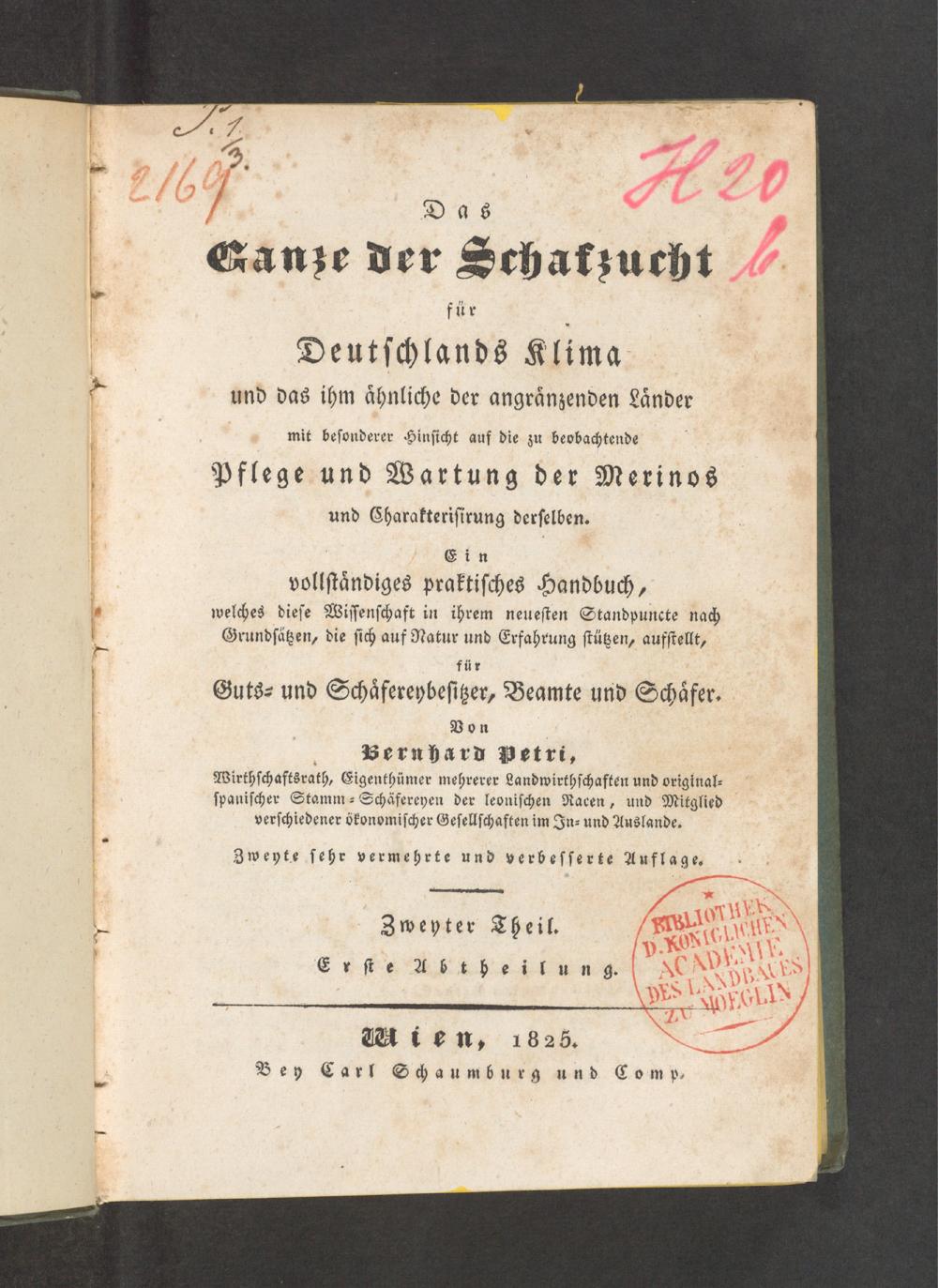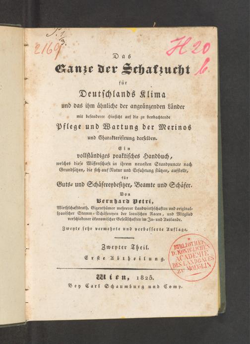Das Ganze der Schafzucht für Deutschlands Klima und das ihm ähnliche der angränzenden Länder mit besonderer Hinsicht auf die zu beobachtende Pflege und Wartung der Merinos und Charakterisirung derselben
