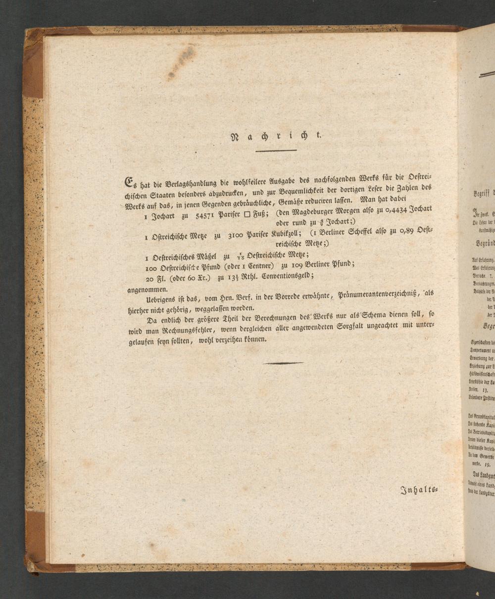 Erster Band (1811) Begründung der Lehre und des Gewerbes : Oekonomie oder die Lehre von den landwirthschaftlichen Verhältnissen