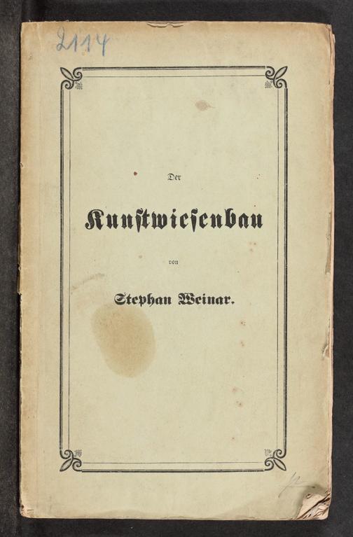 Der Kunstwiesenbau : praktisch dargestellt auf der hochgräflich von Nimptsch'schen Herrschaft Geiersberg, Königgrätzer Kreises in Böhmen / von Stephan Weinar