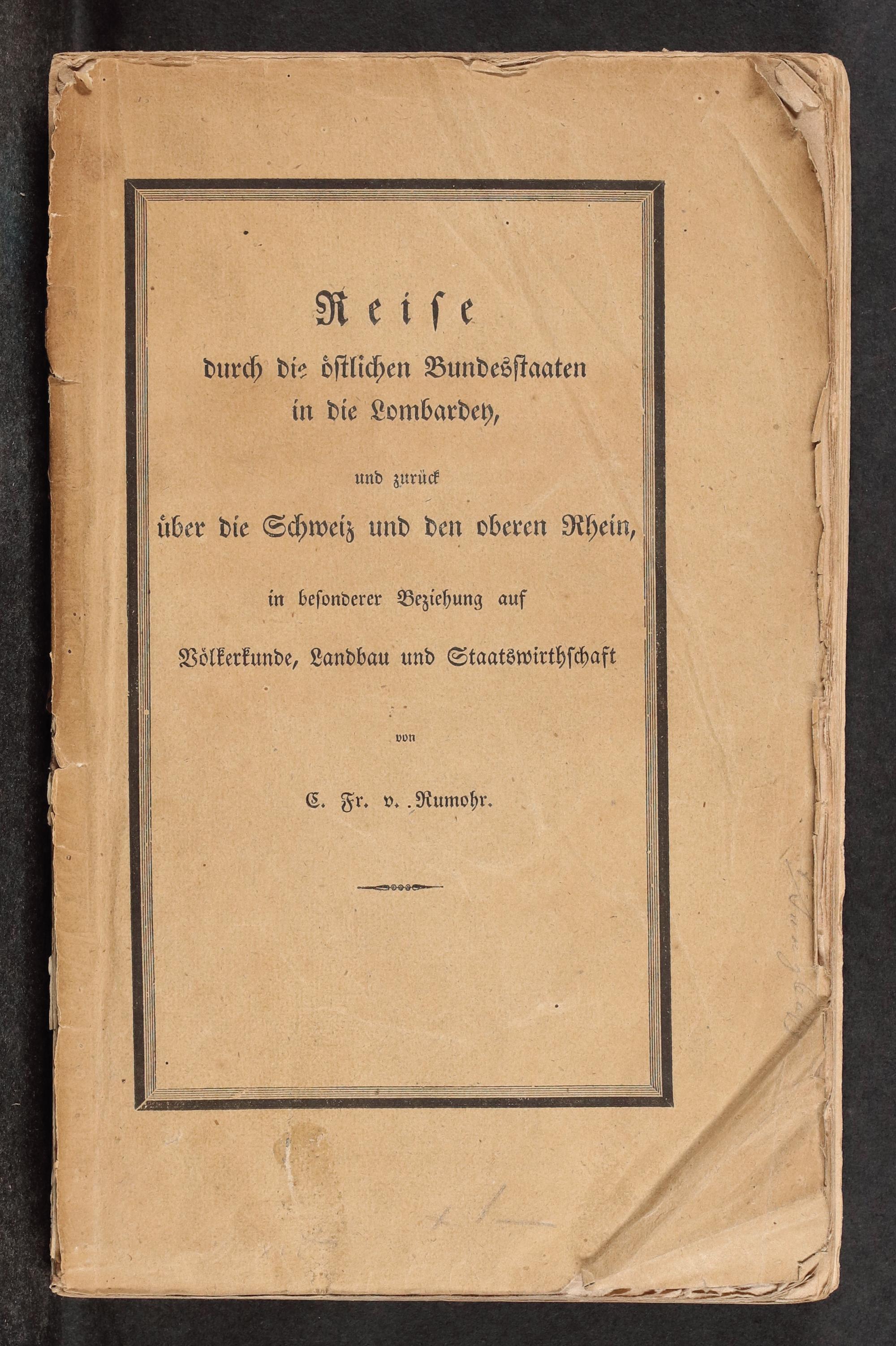 Reise durch die östlichen Bundesstaaten in die Lombardey und zurück über die Schweiz und den oberen Rhein, in besonderer Beziehung auf Völkerkunde, Landbau und Staatswirthschaft / von C. F. von Rumohr