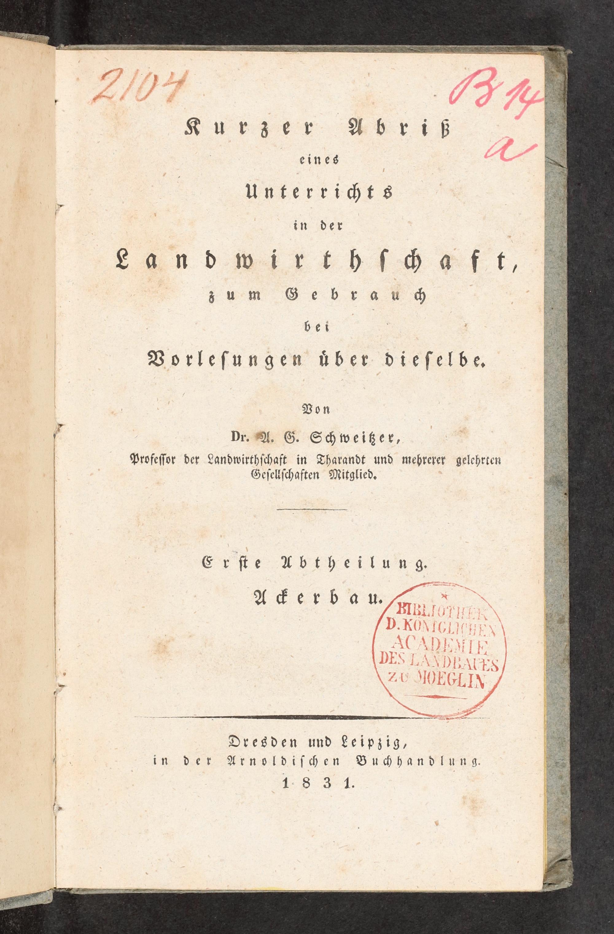 1: Erste Abth. Ackerbau