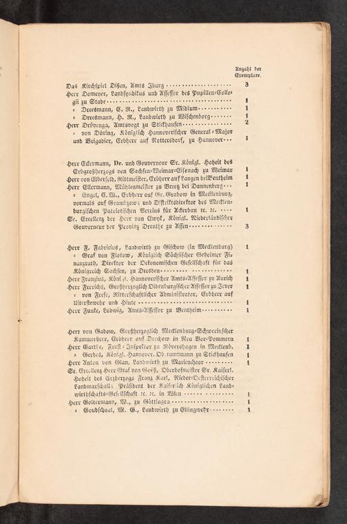 Der Mecklenburgische Haken, ein vorzüglicheres Ackerwerkzeug als der gewöhnliche Pflug : beschrieben nach Schumacher und dargestellt nach fremden und eigenen funfzigjährigen Erfahrungen nebst Notizen über von Thünen's Hakenpflug ; mit 2 Abblildungen und 29 Figuren in Steindruck / von Friederich Gotthard von Boddien, in früheren Jahren ausübendem Landwirthe und Großherzoglich Mecklenburg-Schwerinschem Geheimen Domainenrathe; späterhin Königlich Großbritt.-Hannov. Oekonomie-Rathe und zuletzt wirkl. Regierungs-Rathe bei der Landdrostei zu Aurich, Mitgliede mehrerer gelehrten und ökonomischen Gesellschaften und patriotischen Vereine des In- und Ausandes