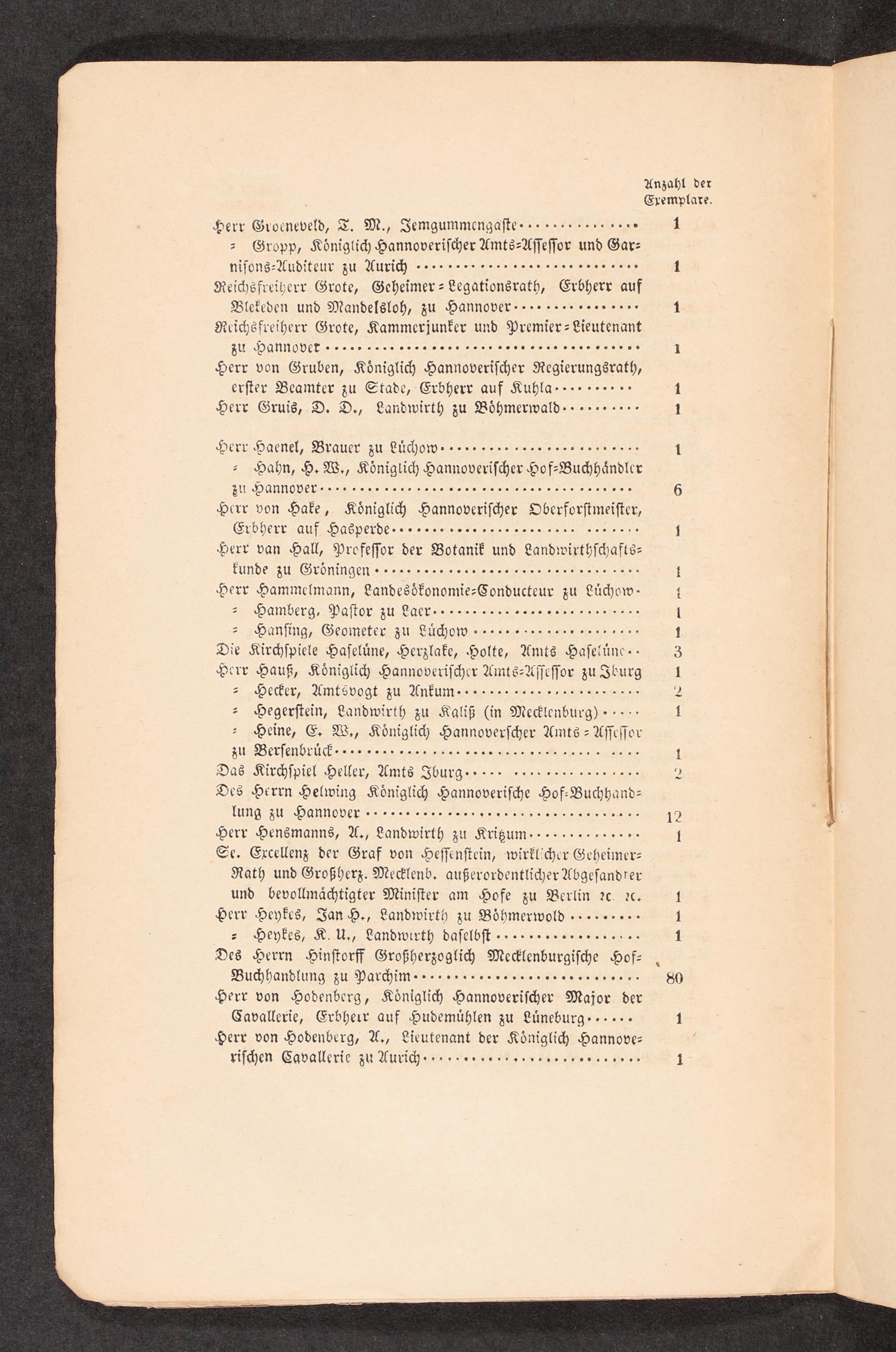Der Mecklenburgische Haken, ein vorzüglicheres Ackerwerkzeug als der gewöhnliche Pflug : beschrieben nach Schumacher und dargestellt nach fremden und eigenen funfzigjährigen Erfahrungen nebst Notizen über von Thünen's Hakenpflug ; mit 2 Abblildungen und 29 Figuren in Steindruck / von Friederich Gotthard von Boddien, in früheren Jahren ausübendem Landwirthe und Großherzoglich Mecklenburg-Schwerinschem Geheimen Domainenrathe; späterhin Königlich Großbritt.-Hannov. Oekonomie-Rathe und zuletzt wirkl. Regierungs-Rathe bei der Landdrostei zu Aurich, Mitgliede mehrerer gelehrten und ökonomischen Gesellschaften und patriotischen Vereine des In- und Ausandes