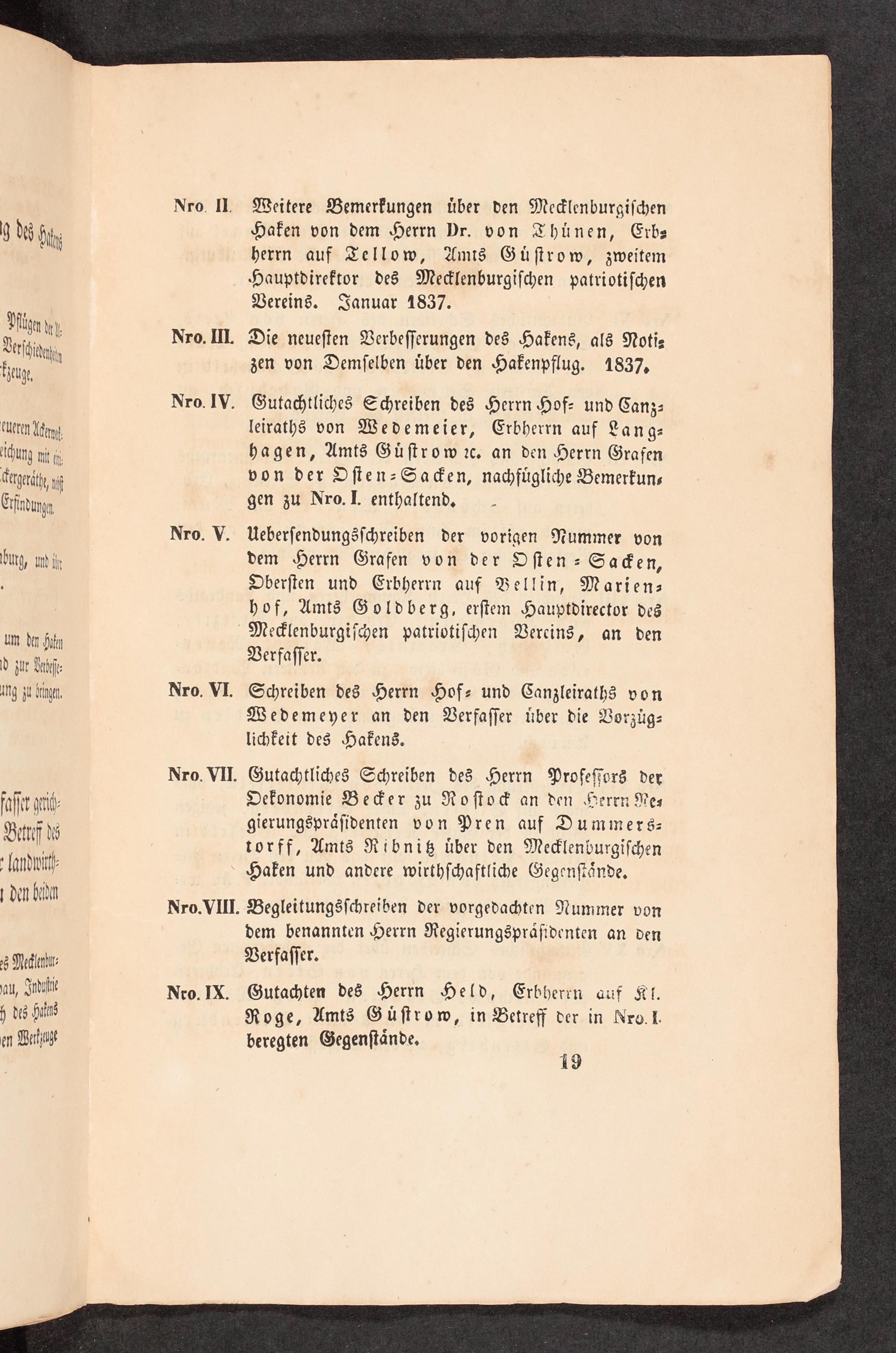 Der Mecklenburgische Haken, ein vorzüglicheres Ackerwerkzeug als der gewöhnliche Pflug : beschrieben nach Schumacher und dargestellt nach fremden und eigenen funfzigjährigen Erfahrungen nebst Notizen über von Thünen's Hakenpflug ; mit 2 Abblildungen und 29 Figuren in Steindruck / von Friederich Gotthard von Boddien, in früheren Jahren ausübendem Landwirthe und Großherzoglich Mecklenburg-Schwerinschem Geheimen Domainenrathe; späterhin Königlich Großbritt.-Hannov. Oekonomie-Rathe und zuletzt wirkl. Regierungs-Rathe bei der Landdrostei zu Aurich, Mitgliede mehrerer gelehrten und ökonomischen Gesellschaften und patriotischen Vereine des In- und Ausandes