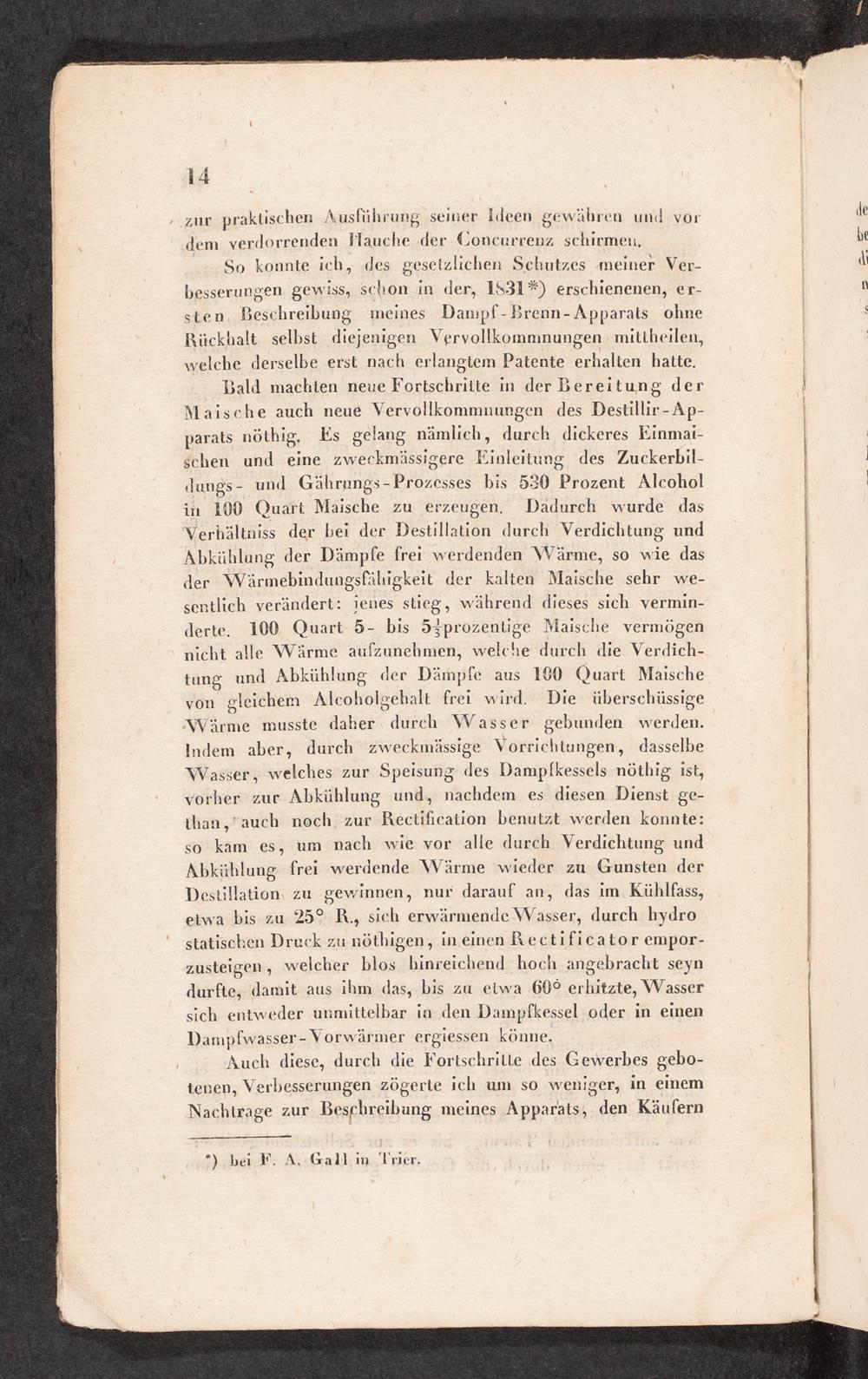 Der Gall'sche oder rheinländische Dampf-Brennapparat in seiner höchsten Vereinfachung : nebst gelegentl. Beleuchtungen einiger ander Dampf-Brennapparate / Ludwig Gall