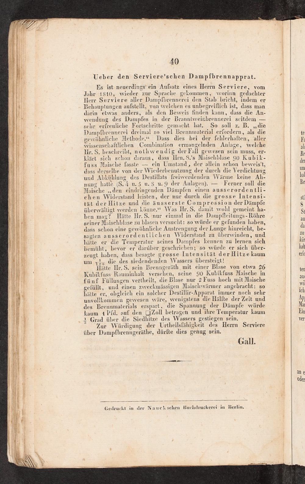 Der Gall'sche oder rheinländische Dampf-Brennapparat in seiner höchsten Vereinfachung : nebst gelegentl. Beleuchtungen einiger ander Dampf-Brennapparate / Ludwig Gall