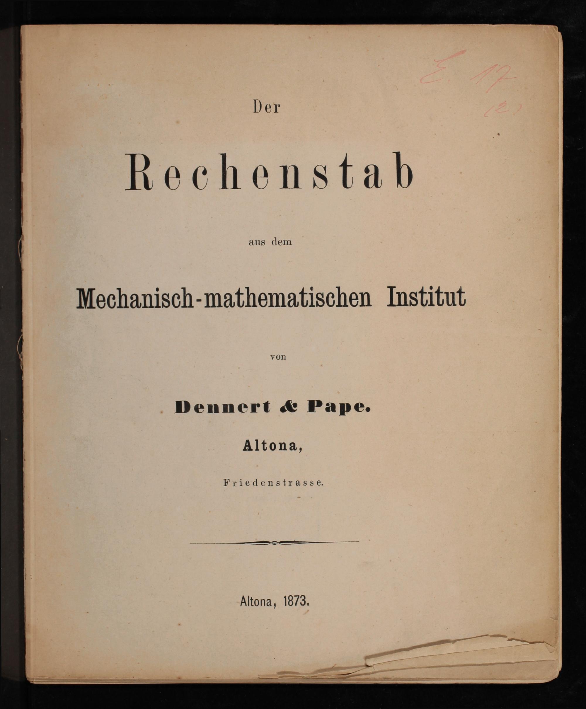 Der Rechenstab aus dem Mechanisch-Mathematischen Institut von Dennert & Pape / Dennert & Pape, Altona, Friedensstraße