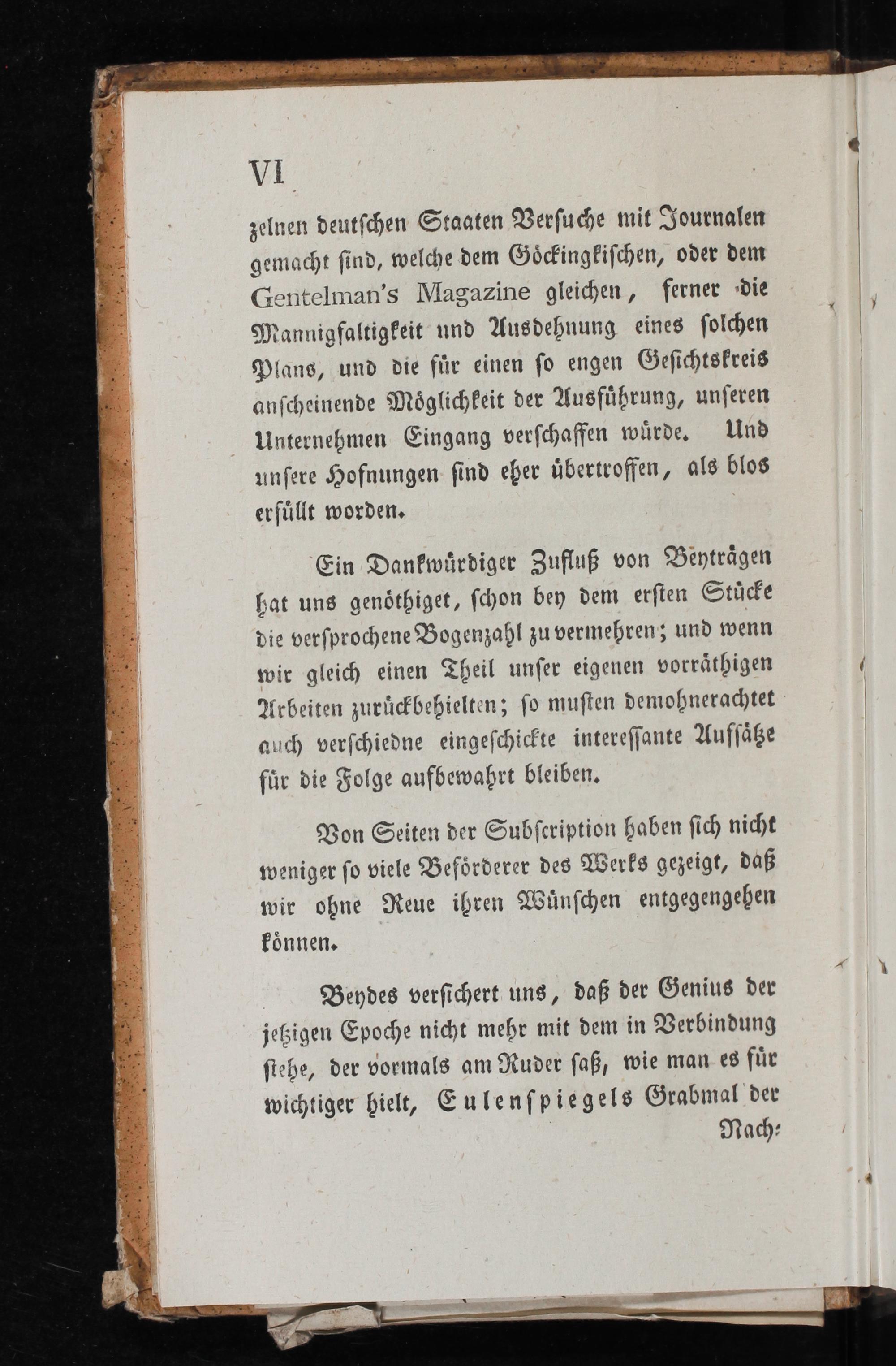 zelnen deutschen Staaten Versuche mit Journalen gemacht sind, welche dem Göckingkischen, oder dem Gentelman's Magazine gleichen, ferner die Mannigfaltigkeit und Ausdehnung eines solchen Plans, und die für einen so engen Gesichtskreis anscheinende Möglichkeit der Ausführung, unseren Unternehmen Eingang verschaffen würde, Und unsere Hofnungen sind eher übertroffen, als blos ersüllt worden.