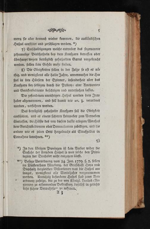 *) In den übrigen Provinzen ist kein Verbot wider die Einfuhr der fremden Haspel so weit solche den Privis legien der Drechsler nicht entgegen läuft.