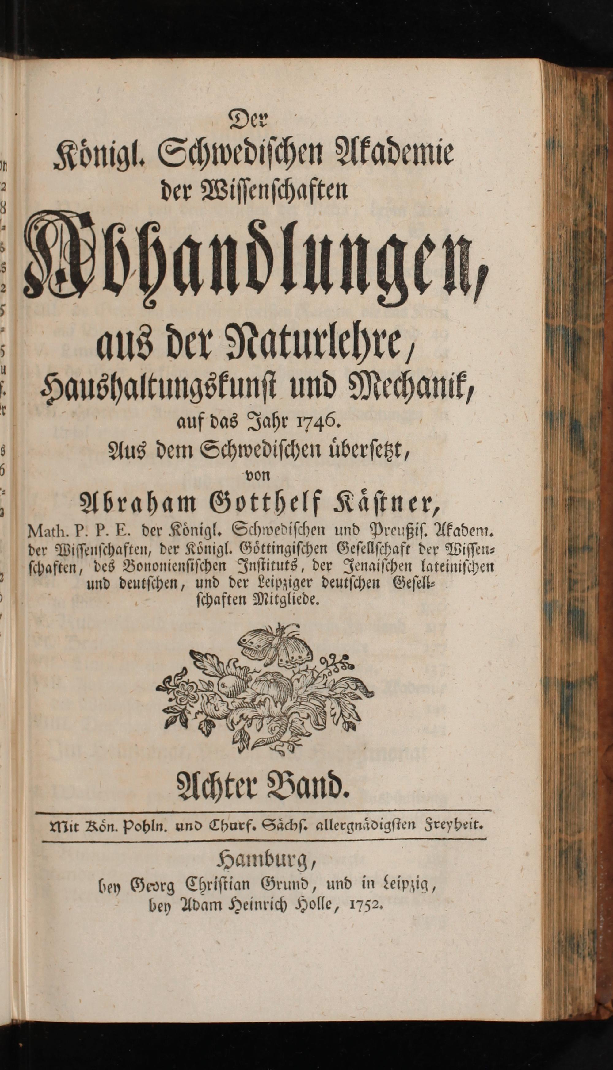 Hamburg, bey Georg Chriſtian Grund, und in Leipzig, bey Adam Heinrich Holle, 1752.